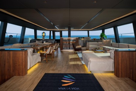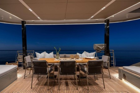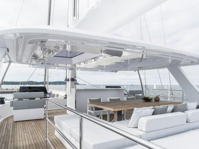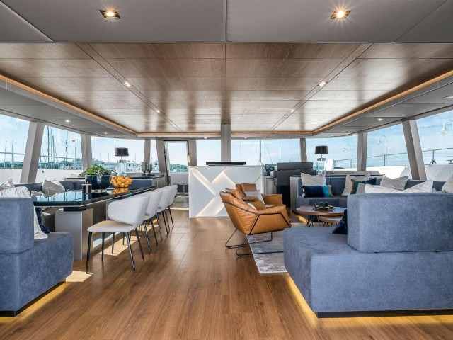 7X wurde 2018 zu Wasser gelassen und verkörpert ultimative aerodynamische Eleganz, indem sie modernste Segeltechnologie mit unvergleichlichem Luxus verbindet. Mit einer beeindruckenden Breite von 11.5 Metern bietet dieser luxuriöse Katamaran 340 Quadratmeter großzügigen Wohnraum im Innen- und Außenbereich und setzt damit neue Maßstäbe in Sachen Luxus auf Katamaranen.
