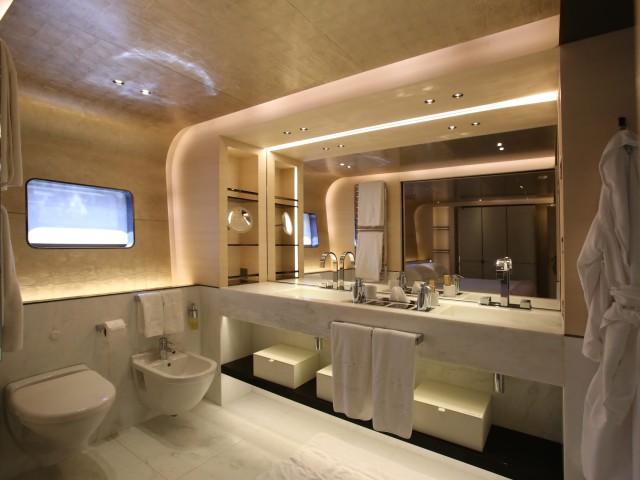 Die Unterhaltung an Bord ist erstklassig: Ein Kaleidescape-Filmsystem bietet eine umfangreiche Bibliothek mit On-Demand-Filmen, ergänzt durch eine intuitive Audio-Video-Anlage, die über Lutron-Domotik und Apple AirPlay gesteuert wird. Satellitenfernsehen und Internet sorgen dafür, dass die Gäste während der gesamten Reise in Verbindung bleiben und sich bestens unterhalten werden.
