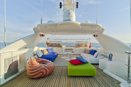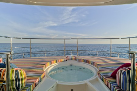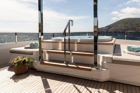 Beginnen Sie Ihren Aufenthalt an Bord von Delta One mit einem Cocktail an der Wet Bar auf der Sky Bridge, wo Sie auch einen Esstisch für entspannte Mahlzeiten finden, während Sie die Umgebung mit Blick auf das Meer genießen. Ein einladender Jacuzzi bietet Platz für 8 Gäste, die sich unter dem Sternenhimmel verwöhnen lassen können.