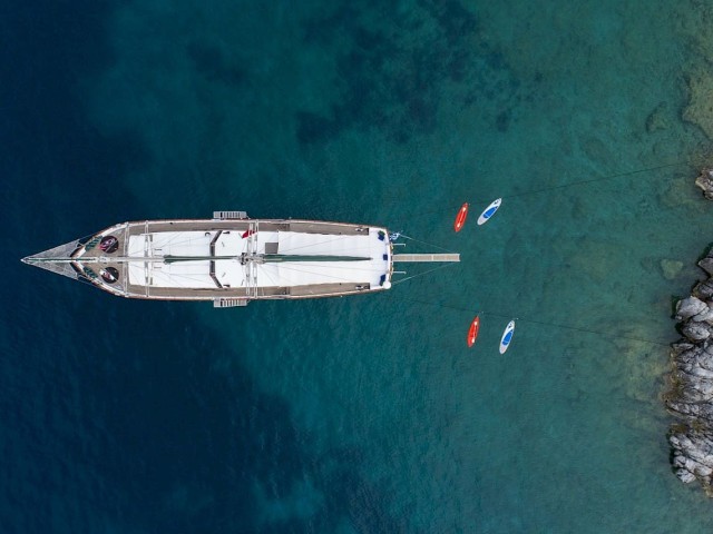 Ecce Navigo 30 Meter Gulet zu chartern mit 5 Kabinen für 10 Personen