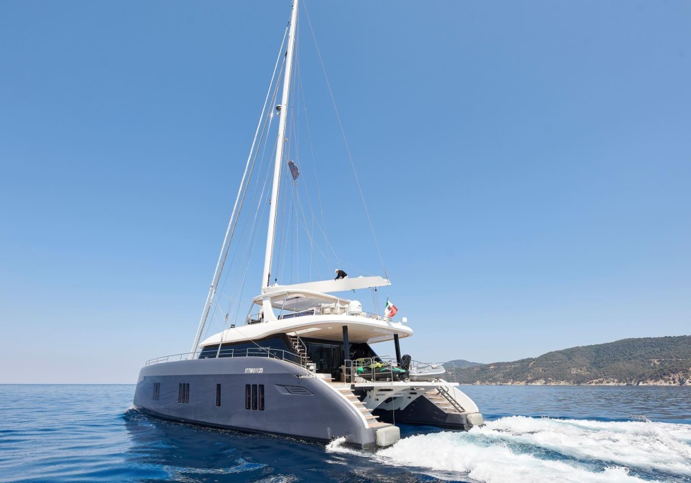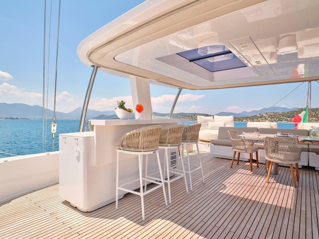 Eine Segeltour durch die atemberaubenden griechischen Inseln an Bord von Genny, einer 23,87 m langen Sunreef 80 aus dem Jahr 2021, ist einfach außergewöhnlich. Dieser luxuriöse Katamaran definiert Komfort und Eleganz neu und bietet eine nahtlose Mischung aus modernstem Design, großzügigem Wohnraum und erstklassigem Service.