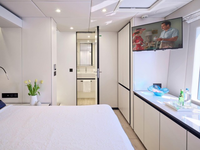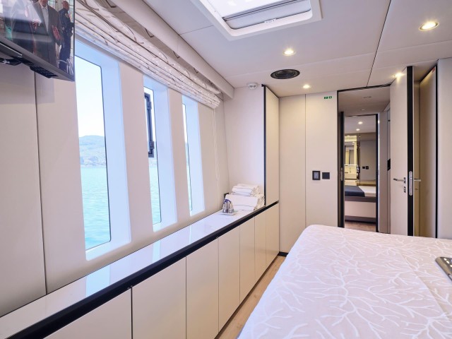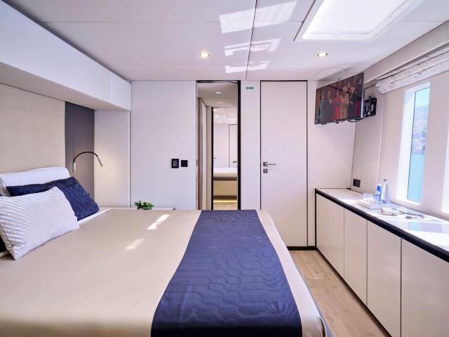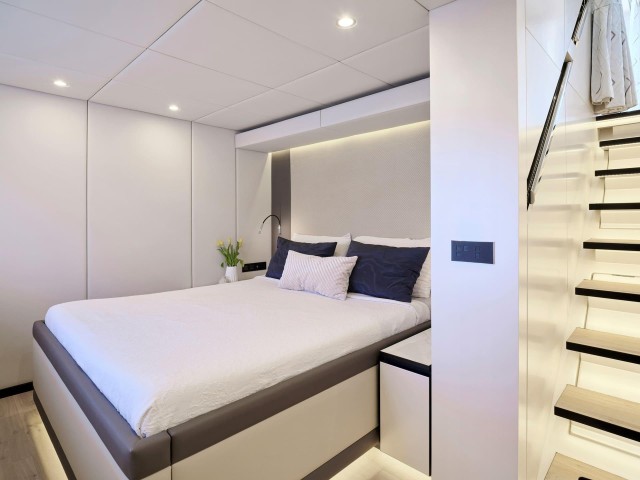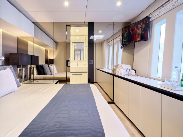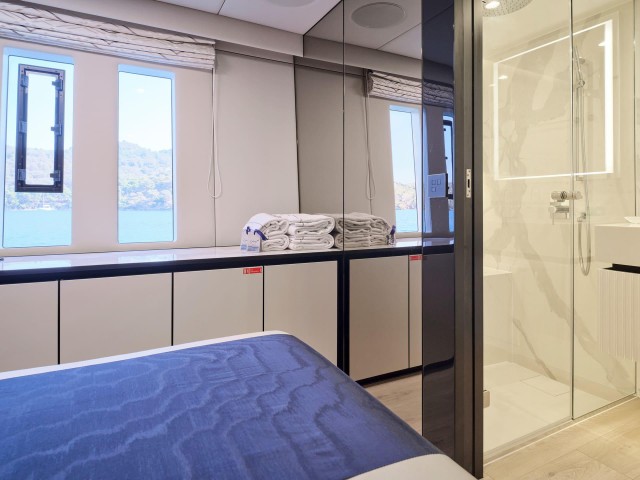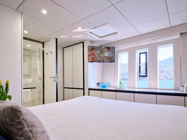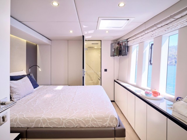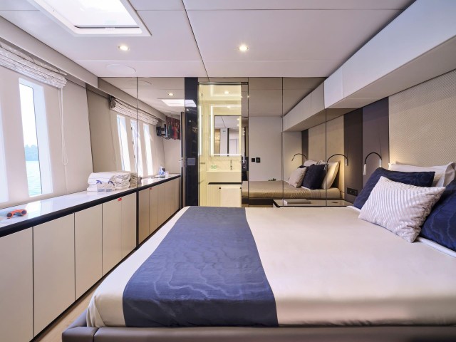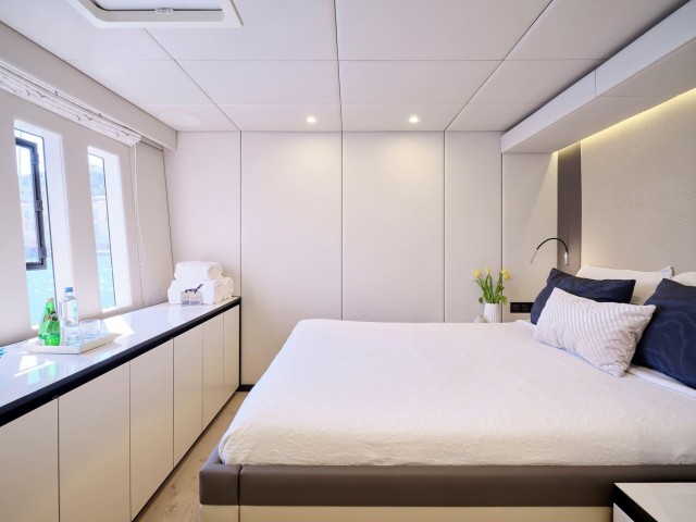 Mit fünf wunderschön eingerichteten Doppelkabinen bietet Genny bis zu 10 Gästen absoluten Komfort. Die Yacht verfügt über zwei Master-Suiten, die jeweils einen begehbaren Kleiderschrank und ein eigenes Bad mit Dusche bieten. Die drei VIP-Kabinen sind ebenso einladend und verfügen über Queensize-Betten und eigene Badezimmer mit Duschen. Jede Kabine ist sorgfältig gestaltet und mit hochwertiger Bettwäsche, einem 32-Zoll-Samsung-Fernseher, einer individuell regulierbaren Klimaanlage, einem Safe, Bademänteln, Hausschuhen und hochwertigen Annehmlichkeiten wie Tresemme-Shampoo, -Spülung und -Körperpflegeprodukten ausgestattet. Die Gäste können während ihres gesamten Aufenthalts die perfekte Kombination aus zeitgenössischer Eleganz und wohnlichem Komfort genießen.