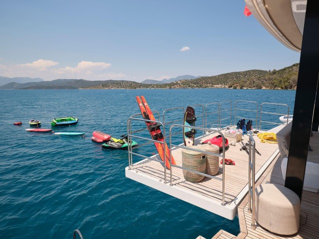Genny ist mit einer großen Auswahl an Wasserspielzeugen ausgestattet, die Gästen jeden Alters endlosen Spaß garantieren. Zu ihrer beeindruckenden Ausstattung gehören Sea-Scooter für mühelose Unterwassererkundungen, ein E-Foil für eine aufregende Fahrt über die Wellen, Schnorchel- und Angelausrüstung zur Erkundung der Meereswelt, Paddleboards und Kajaks für entspannte Küstenabenteuer sowie ein Axopar 37' Kabinentender, der von zwei 300 PS starken Mercury-Motoren angetrieben wird und stilvolle Landausflüge ermöglicht.