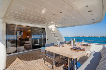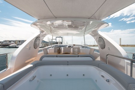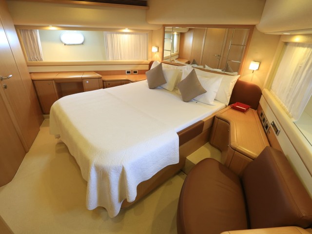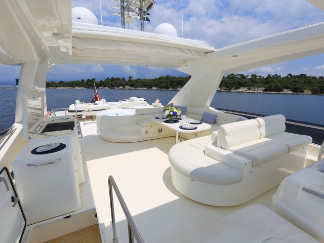 Mit einer Höchstgeschwindigkeit von 27 Knoten und einem Tiefgang von nur 1,90 Metern ist sie perfekt für Inselhopping geeignet. Beginnen Sie Ihr Abenteuer in ihrem Heimathafen im glamourösen Yachthafen von Cannes und verabschieden Sie sich von den alltäglichen Sorgen von ihrem geräumigen Achterdeck, während Sie auf dem gepolsterten Sofa am Heck an einem kühlen Champagner nippen.