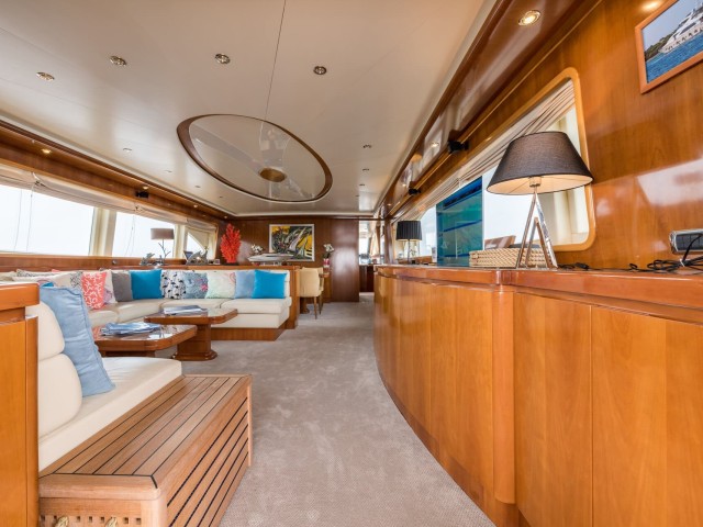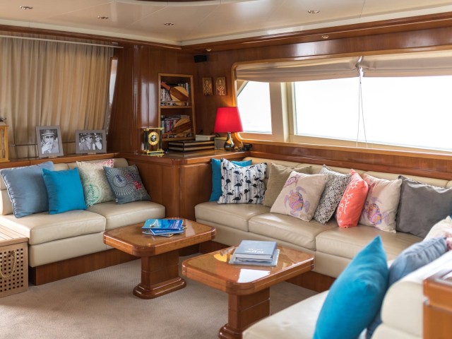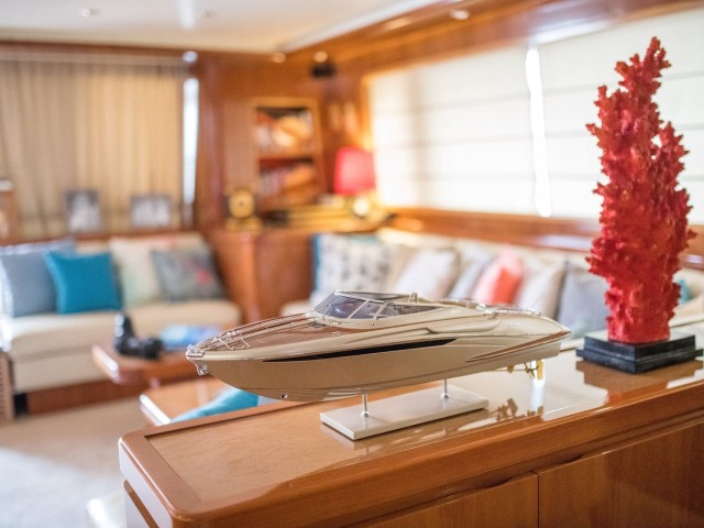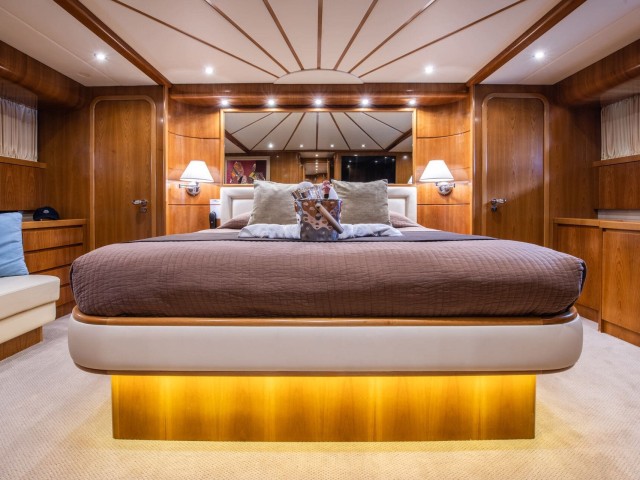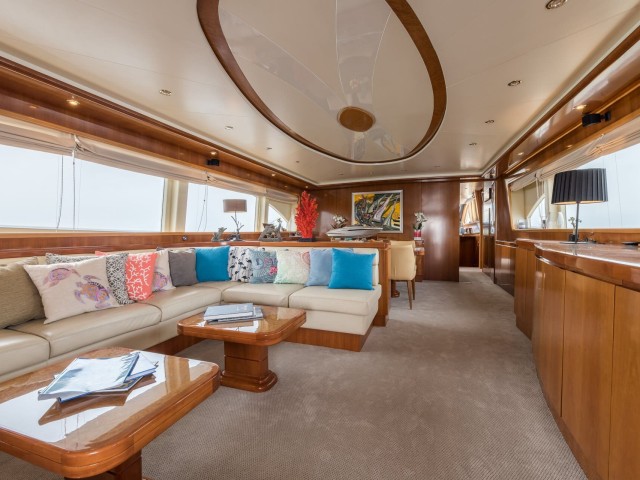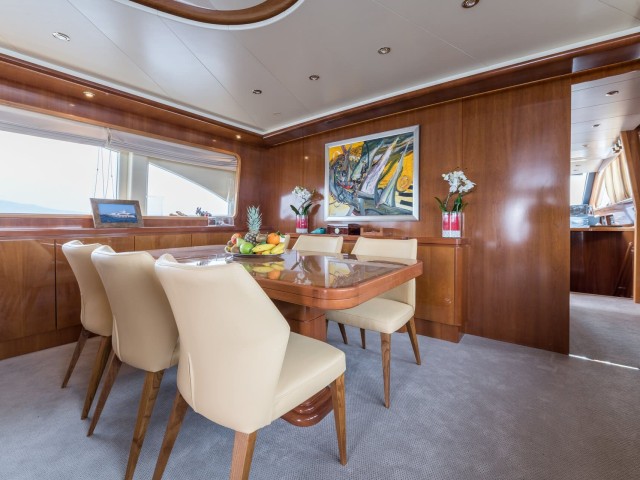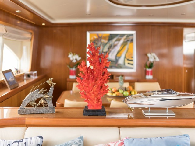 Star Link hat ein wunderschönes Interieur, das für ein entspanntes Leben auf See entworfen wurde. Der Salon ist dank der großen seitlichen Fenster mit natürlichem Licht durchflutet. Wenn Sie sich vor dem Schlafengehen noch einen Film ansehen möchten, machen Sie es sich auf dem prächtigen Ledersofa gemütlich. Weiter vorne befindet sich ein formeller Essbereich, der von schönen Kunstwerken umgeben ist, welche die neutralen Paletten des Salons aufpeppen.