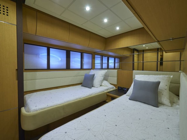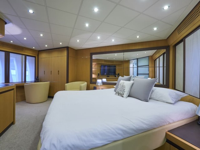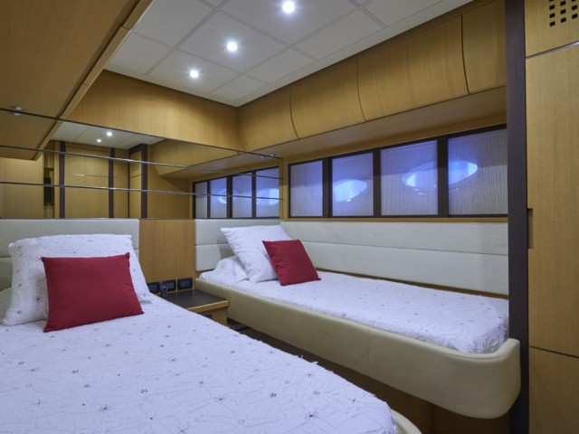 Danzas es capaz de transportar hasta 8 invitados en 4 cabinas amuebladas con buen gusto, todas ellas equipadas con baño privado para asegurar noches de descanso en el fondeo. Elija entre la suite principal de popa, la cabina VIP de proa, o dos dobles laterales, bellamente amueblados para momentos de relax en una sofisticación sublime. Los miembros de la tripulación excepcionalmente capacitados garantizarán una estancia agradable y servicios de primera calidad.