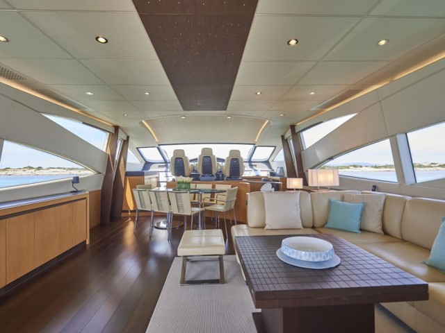 Con sus líneas elegantes, sus sorprendentes prestaciones y una fiabilidad superior, el Pershing 90 Danzas es un excepcional yate de alquiler con un volumen que supera con creces las expectativas de un yate de 27,5 metros. Seguro, pero emocionante, es el superyate definitivo de lujo deslumbrante, artesanía excepcional y estética irresistible. Con una arquitectura naval y un diseño interior ideado por el muy respetado Fulvio Di Simon, Danzas fue lanzado en 2007 y desde entonces es uno de los yates de alquiler más deseados de Ibiza.