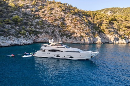 Elvi es un yate de 30.20 metros, construido en 2006 en el prestigioso astillero Posillipo y meticulosamente renovado en 2021 para garantizar los más altos estándares de lujo y comodidad. Diseñada para combinar a la perfección rendimiento y estilo, Elvi ofrece una experiencia de charter inolvidable en las impresionantes islas griegas. Con base en Atenas y una tripulación dedicada de seis personas, está perfectamente preparada para explorar la belleza del Egeo y más allá.