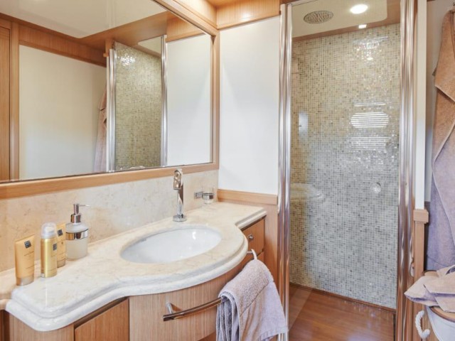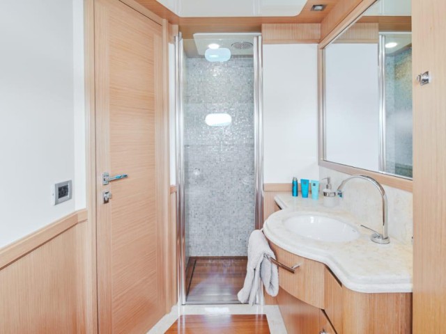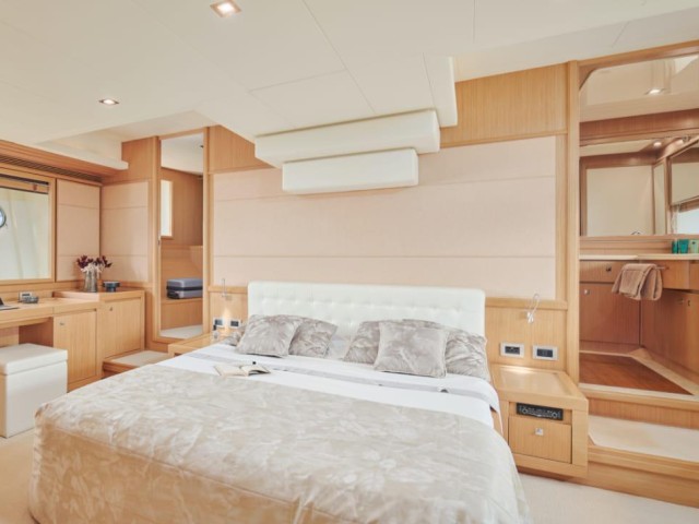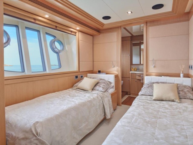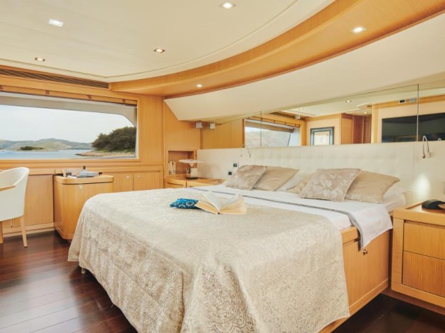 Friend's Boat puede alojar hasta 8 invitados en 4 magníficos camarotes, incluyendo una suite principal palaciega situada en la cubierta principal para ofrecer una mayor privacidad con unas vistas al mar deslumbrantes, un camarote VIP igualmente espacioso y dos camarotes twin, uno de los cuales puede convertirse en doble si se solicita. Cada camarote cuenta con un baño independiente.