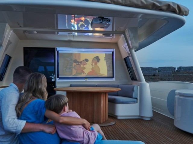 Hermoso por dentro y por fuera, Friend's Boat cuenta con extraordinarios espacios exteriores dedicados a los más altos estándares de vida marina. El flybridge cuenta con una sofisticada zona de comedor, tumbonas y un cine al aire libre donde podrá disfrutar de noches de cine bajo el cielo estrellado.