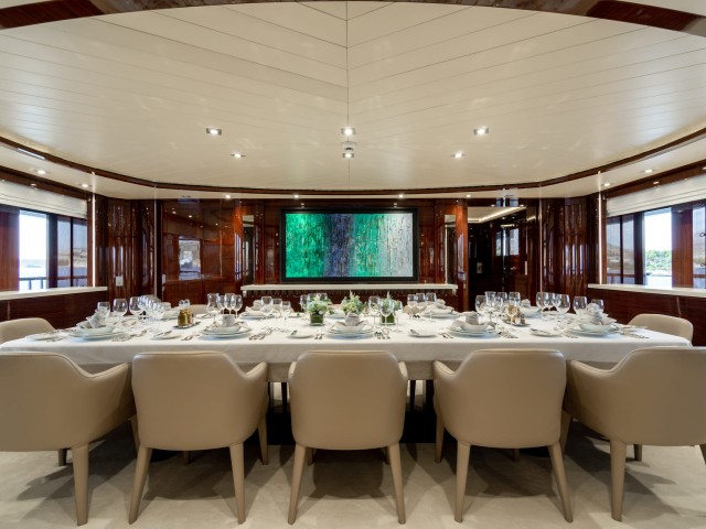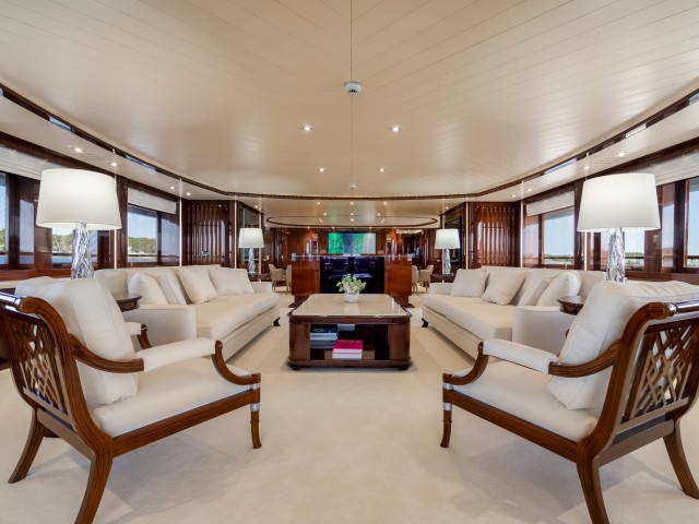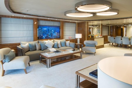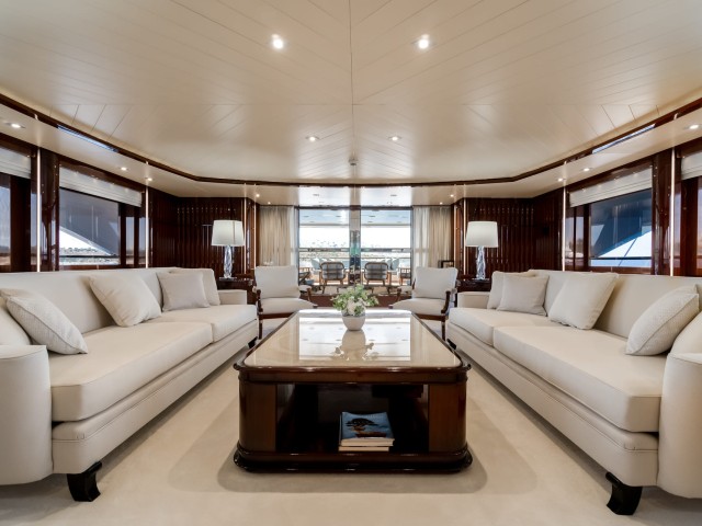 Tras su reforma en 2024, Vertigo presenta interiores voluminosos y modernos que combinan diseño contemporáneo con una elegancia atemporal. Los salones de las cubiertas principal y superior están decorados con muebles Minotti, creando espacios acogedores para relajarse o socializar. El salón principal también cuenta con un proyector de TV de gran tamaño, perfecto para noches de cine a bordo.