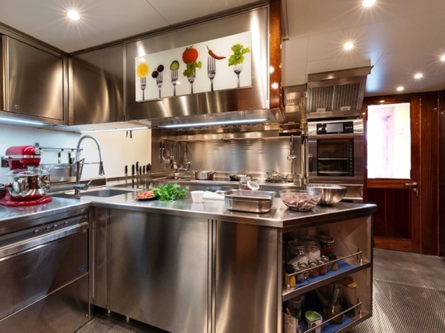 Cloud Atlas has an intelligent layout that sleeps up to 12 guests in 5 lavish cabins. If you choose the master suite, expect only the best - a king size bed invites you for restful nights, while a slightly separated office area allows maximum focus for demanding work. Her chaise lounge leans against a large window, and is a perfect little reading haven, while the bathroom uses a play of different marbles to create a nuanced look for private moments. The VIP suite is where art-deco meets minimalism, where retro portholes add spice to the glamorous atmosphere. You wouldn’t go wrong choosing one of two double cabins or one twin, either - all boast glossy furnishings and trendy ensuites. Last but not least, her skylounge converts into a romantic double cabin for stargazing before bedtime.