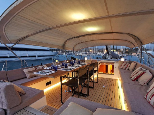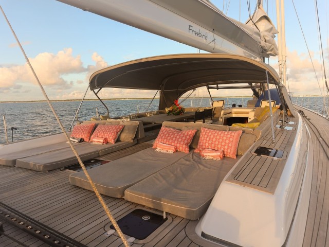 Constructed with advanced materials and naval architecture, Freebird offers fast and stable cruising under sail, while maintaining high levels of luxury and safety. Her efficient deck plan ensures easy handling for the crew and a relaxed experience for guests. The separate aft crew cockpit enables seamless maneuvering and allows for excellent guest privacy, ensuring uninterrupted leisure time onboard.