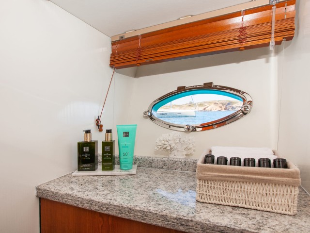 When you’re ready to catch up on beauty sleep, choose one of 4 well-appointed cabins that can carry up to 8 guests. The master suite is truly palatial and has a lounging area where you can catch up on reading before bed. If you choose the VIP suite, you’ll enjoy almost equal comforts. All cabins, including the twin and bunk cabin, have separate ensuites to guarantee maximum privacy for all guests.