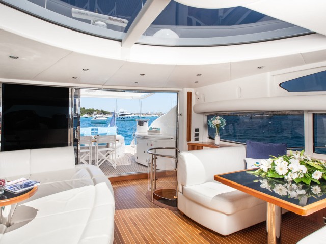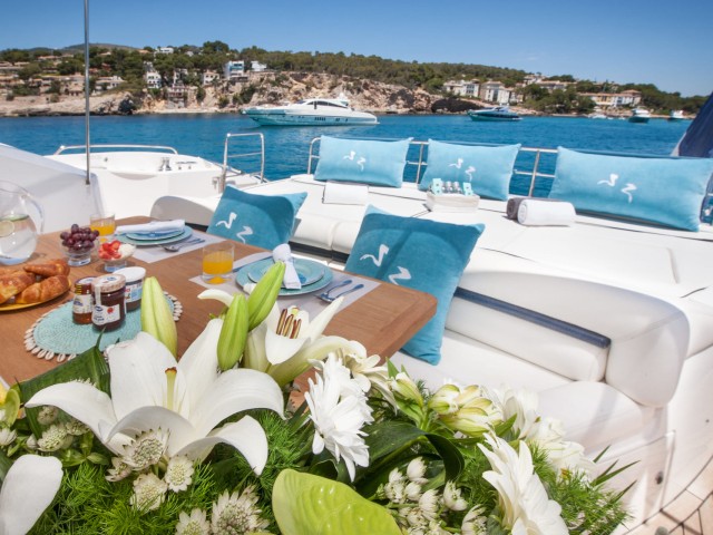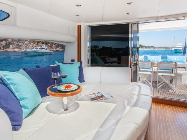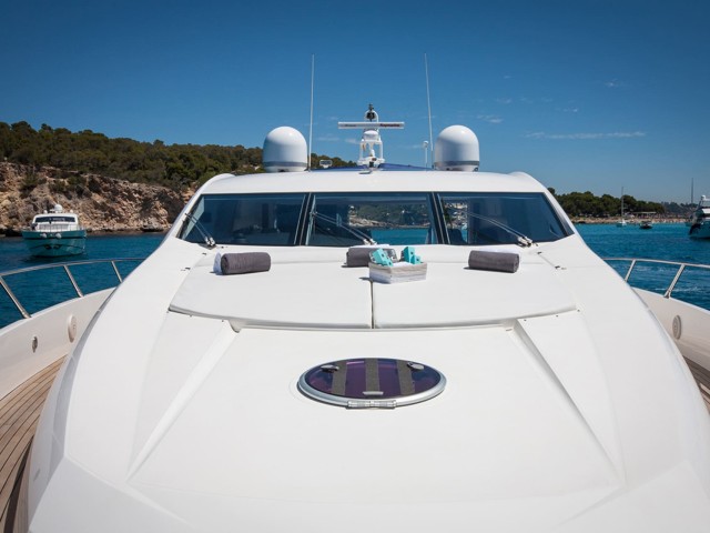 Froggy, a Sunseeker Predator 82 - one of the most sought-after models of the renowned shipyard - reaches thrilling top speed of 36 knots that makes her perfect for island-hopping adventures around the Balearics. Crewed with a stellar team of 3 marine professionals devoted to making every minute of your cruise count by providing top-notch services, she is ready for her next yacht charter adventures in the turquoise waters of Mallorca.