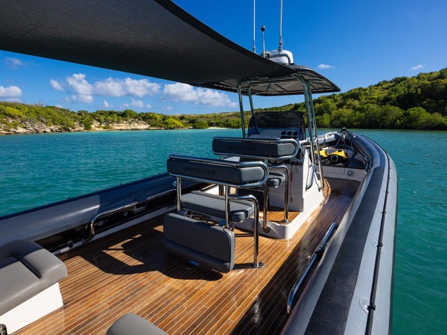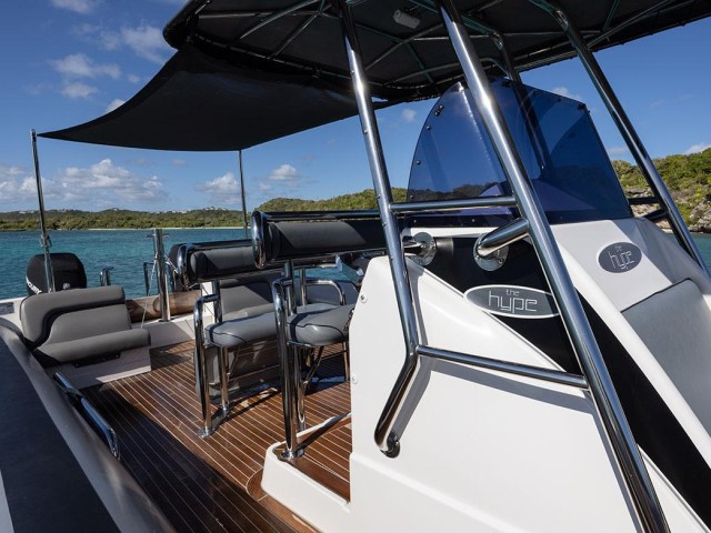 The extended swim platform is fully equipped for water access and toy launching, making it easy to dive into the crystal-clear waters or enjoy the selection of onboard water toys. For laid-back afternoons or celebratory evenings, the deck offers the perfect setting.