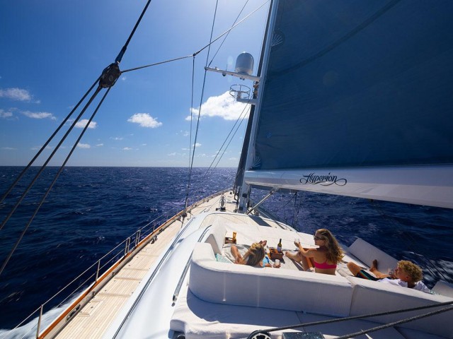 Awarded the Showboats International Award for Best Sailing Yacht Over 38 Metres in her debut year, and a winner of the Millennium Cup, the St. Barth’s Bucket, and the Superyacht Cup in Palma, Hyperion is not just a charter yacht – she is a part of sailing history. Chartering Hyperion is a rare opportunity to experience performance, prestige, and comfort in perfect harmony.