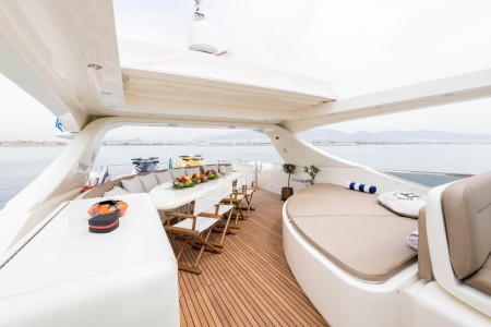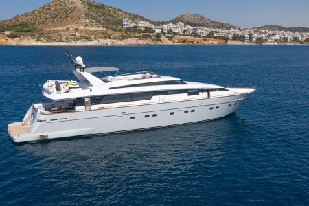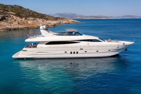 Perfect for island hopping adventures, this enchanting 24 meter superyacht boasts a refined aesthetic and ultimate performances for spectacular adventures at sea. Julie M carries a pedigree of Ferretti shipyards and the famous Zuccon International Project design team. After her 2008 debut, she was carefully maintained and extensively refitted in 2018 to ensure her guests enjoy a supreme condition for a soothing cruise through the most ravishing Mediterranean destinations.