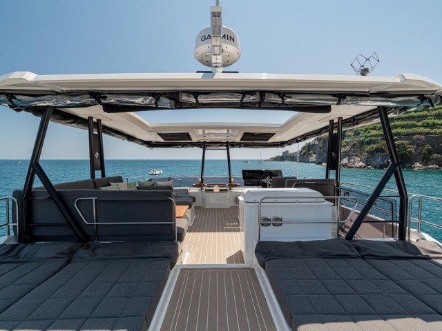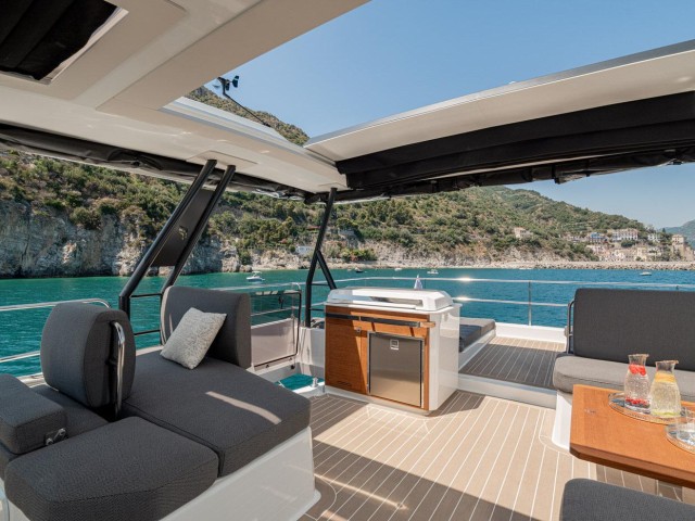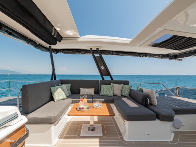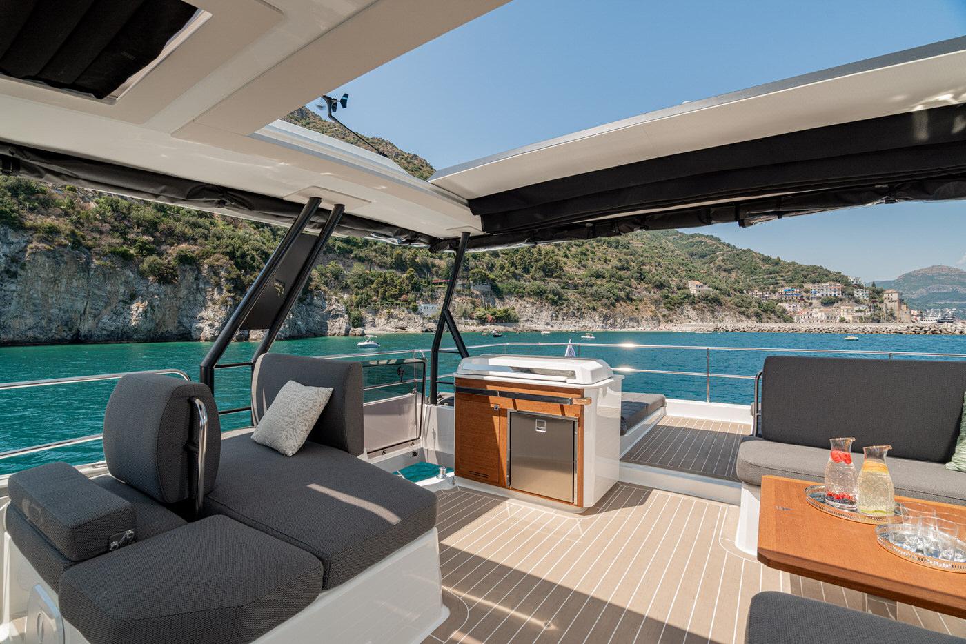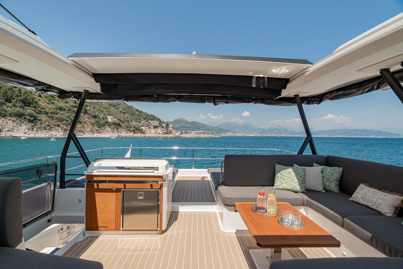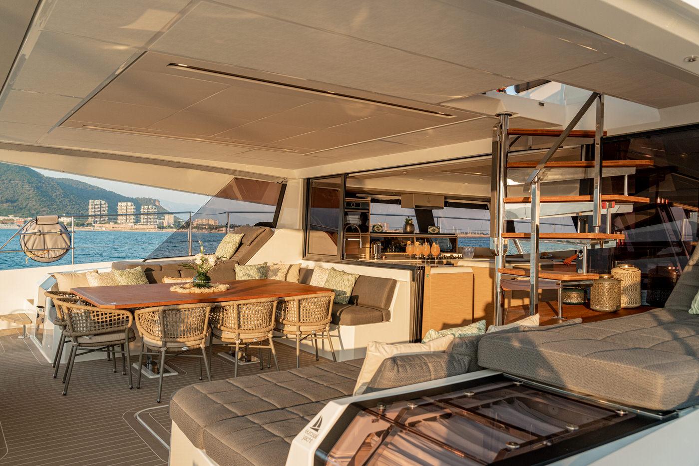 From the moment you step aboard, CORE feels open, bright and welcoming. As the flagship of Fountaine Pajot’s motor yacht range, she has been designed to maximise both comfort and connection to the sea. Her wide beam creates remarkable living space, while the seamless flow between interior and exterior areas gives the yacht a natural rhythm that suits life in the Mediterranean perfectly.