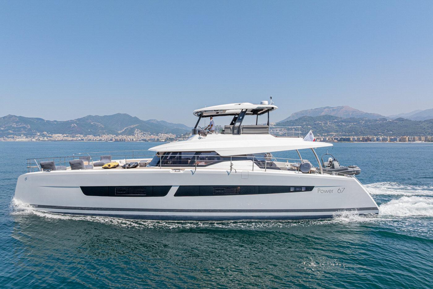 CORE is a beautiful Fountaine Pajot Power 67 catamaran built in 2024, combining the comfort of a luxury villa on the water with the easy cruising style that makes catamarans so appealing. Based in Salerno, she is perfectly positioned for discovering the Amalfi Coast, while also offering an elegant base for wider charters along Italy’s coastline, including Sicily and Sardinia.