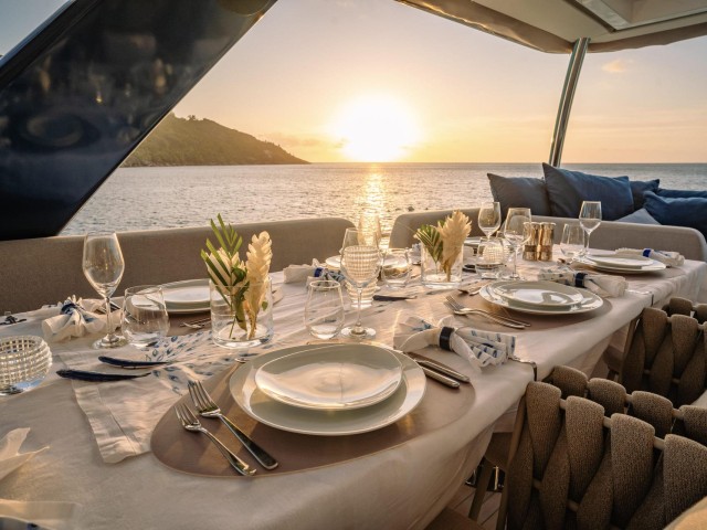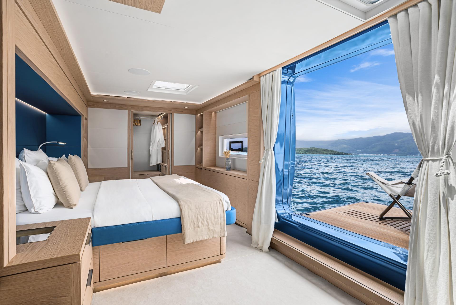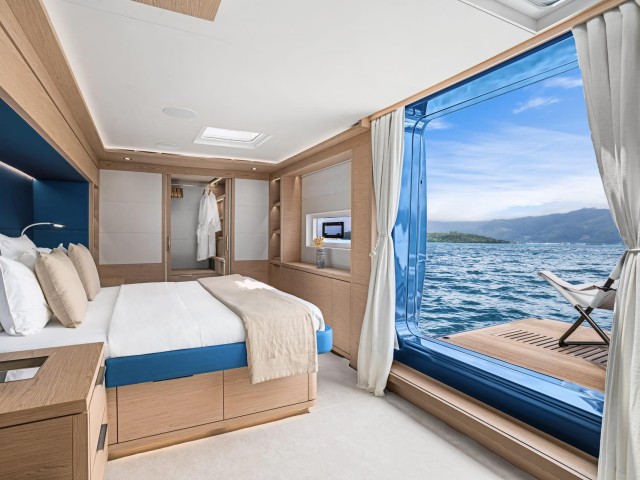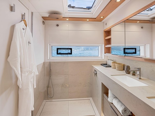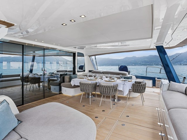 The atmosphere on board is relaxed and inviting, with soft materials, clean lines and carefully considered details that enhance comfort without excess. The indoor and outdoor areas blend effortlessly, allowing guests to move easily between shaded lounges and sunlit decks.
