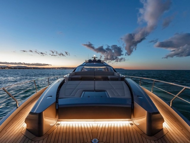 Getreu der DNA von Pershing verfügt Beyond über großzügige Deckflächen, die für Hochgeschwindigkeitsfahrten und luxuriöses Leben im Freien konzipiert sind. Ihr breiter Sportfly umfasst eine 5 m² große Sonnenliege, während das Vordeck und das Achterdeck zusätzliche Liegeflächen zum Sonnenbaden, Essen oder für Cocktails bei Sonnenuntergang bieten. Der hochmoderne „Music Hull“ ermöglicht es den Gästen, Musik sogar unter Wasser zu genießen – ein exklusives und beeindruckendes Erlebnis für Schwimmer und Taucher.