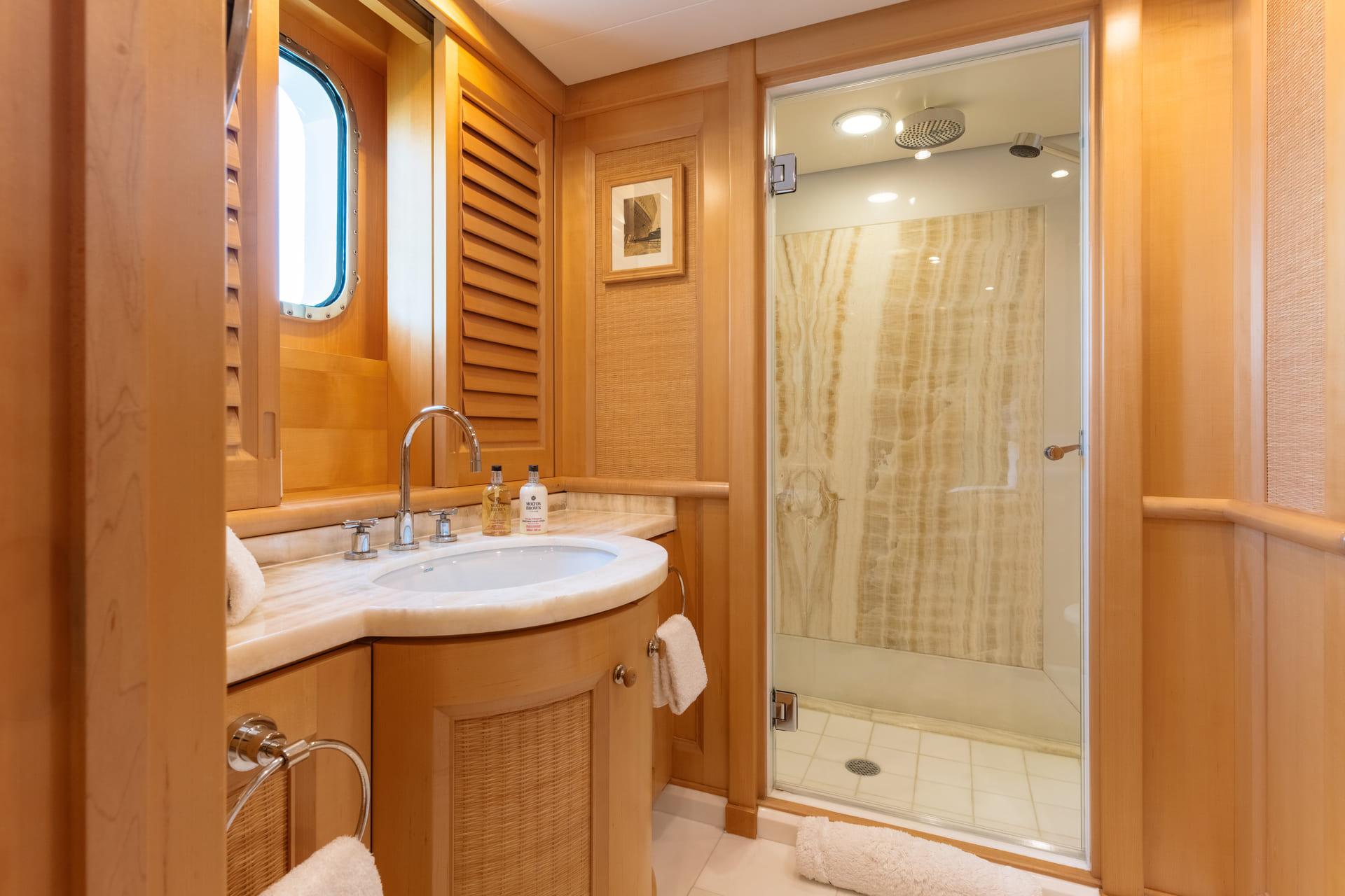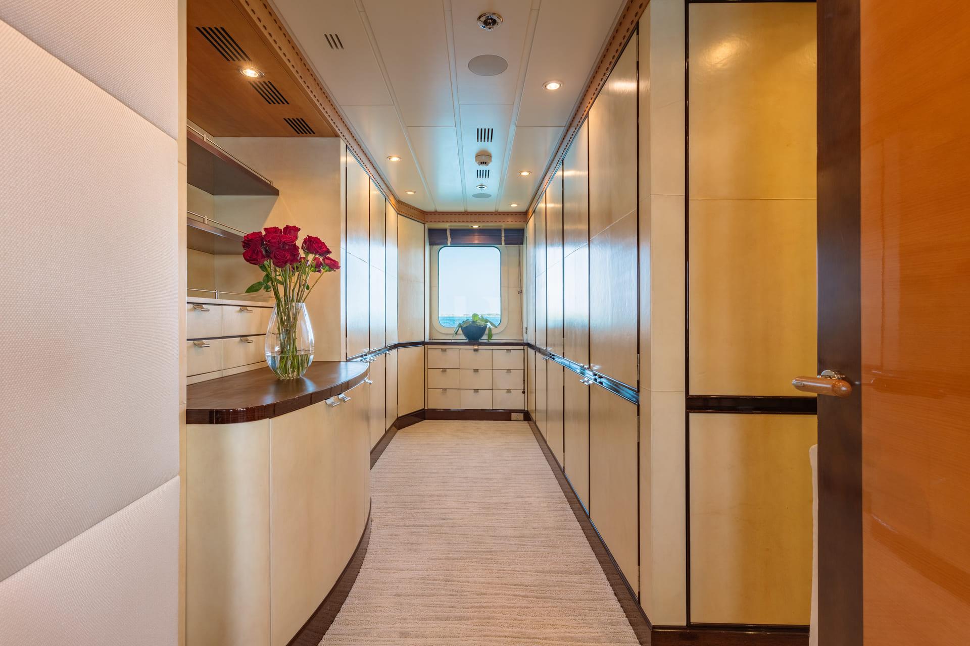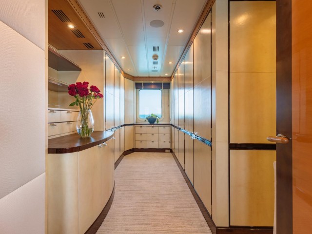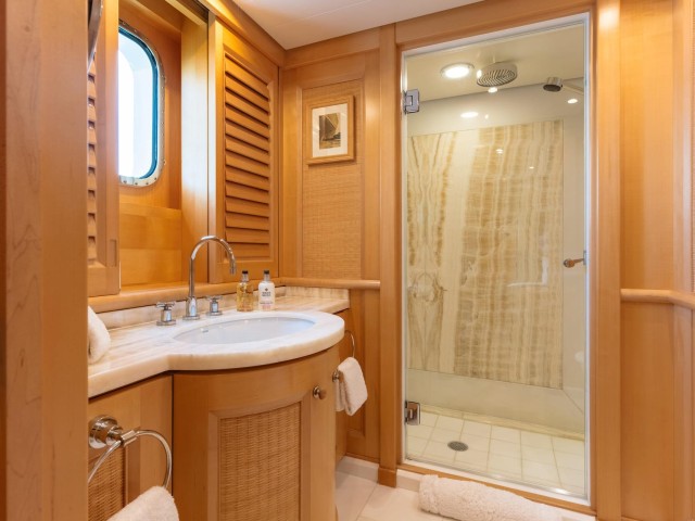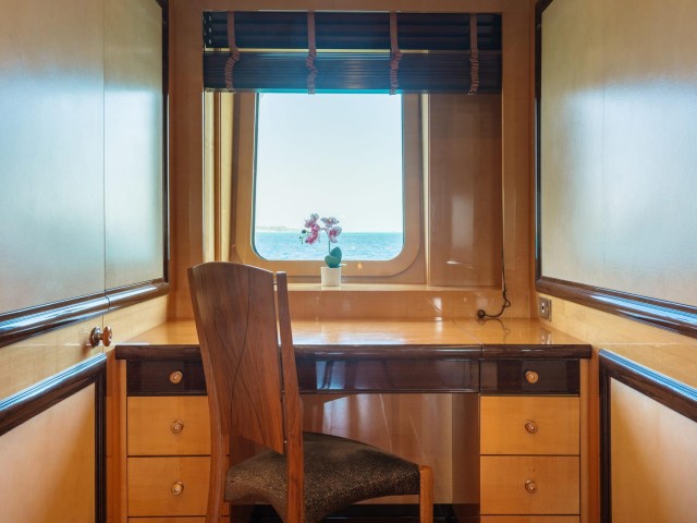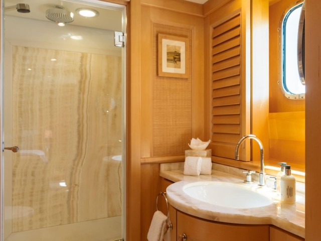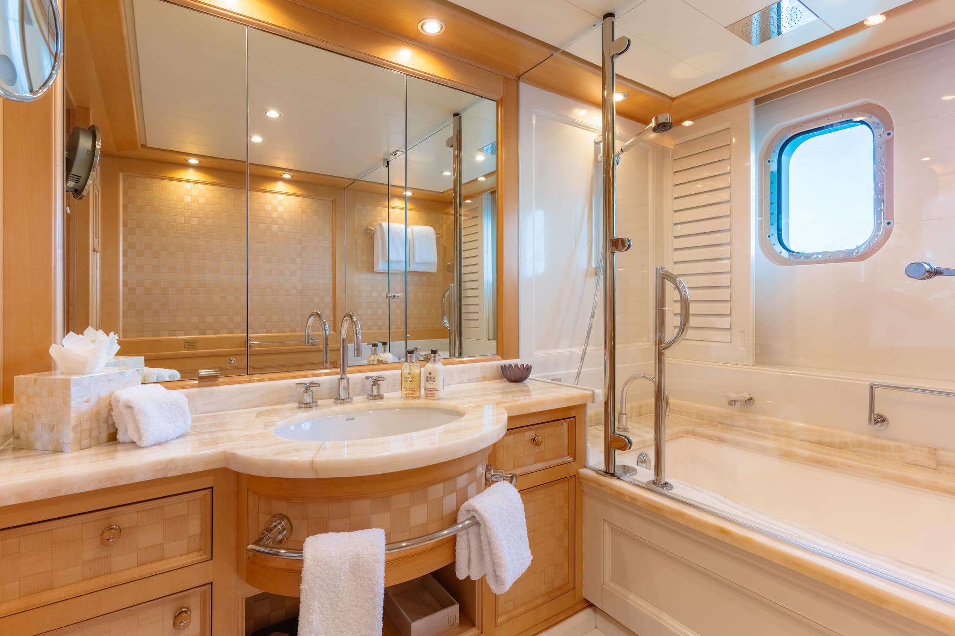 Die Unterkünfte an Bord sind großzügig, elegant und so gestaltet, dass jede Person maximale Privatsphäre genießt. Die vollbreite Master Suite erstreckt sich über rund 100 Quadratmeter und bietet eine eigene Lounge, ein Büro sowie ein luxuriöses Badezimmer mit separaten Bereichen für ihn und sie. Zwei VIP-Kabinen mit Queen-Betten verfügen über private Ankleidezimmer und große Jacuzzi-Badewannen, während die beiden weiteren Queen-Kabinen – jeweils mit zusätzlichem Pullman-Bett – ideal für Familien geeignet sind. Moderne Unterhaltungssysteme, iPad-Steuerungen, hochwertige Pflegeprodukte von Molton Brown und schnelles Starlink-Internet sorgen überall für höchsten Komfort.