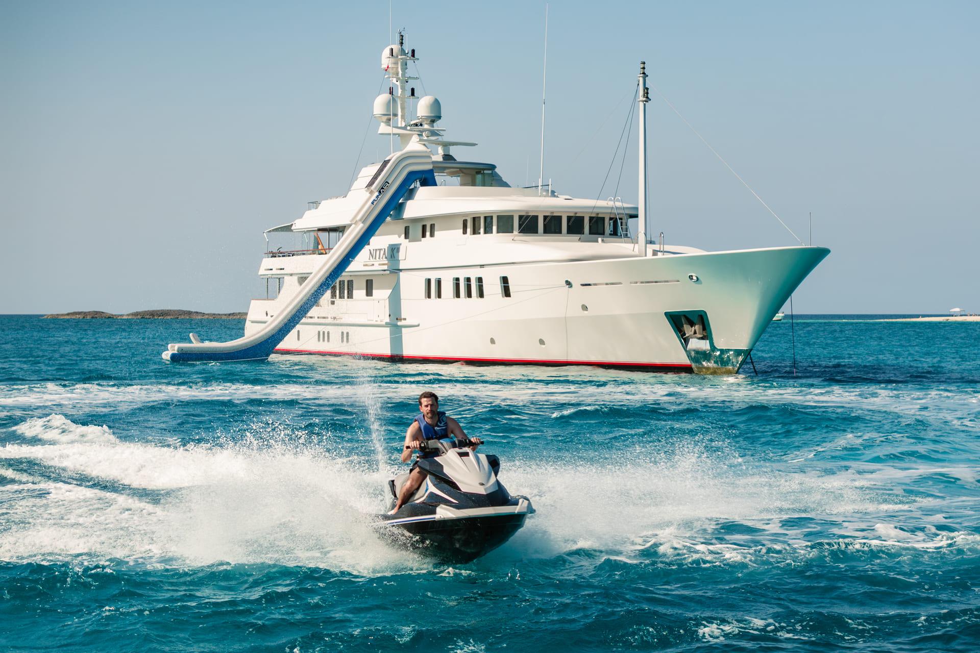 Für sportliche Chartergruppen hält Nita K II eine beeindruckende Auswahl an Wasserspielzeug bereit. Der 39-Fuß-Boston-Whaler-Tender, Jetskis, Wakeboards, Wasserskier, Seabobs, Kajaks, ein Seepool mit Quallennetz, Angelausrüstung und eine brandneue Rutsche garantieren abwechslungsreiche Tage auf dem Meer. Die Yacht ist ideal für Familien, Abenteurer und alle, die das Wasser lieben.
