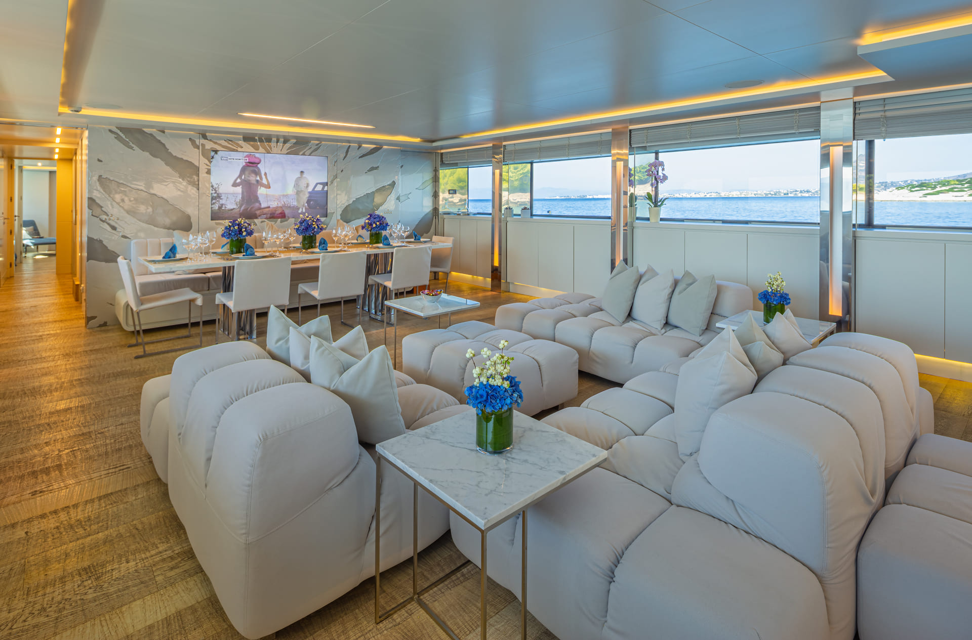 Sea Wolf bietet Platz für bis zu 12 Gäste und verfügt über sechs elegant eingerichtete Kabinen, die ein Höchstmaß an Komfort und Privatsphäre bieten. Unter diesen Unterkünften befindet sich eine prächtige Master-Suite auf dem Hauptdeck, die sich durch eine großzügige Aufteilung und ein luxuriöses Kingsize-Bett auszeichnet. Darüber hinaus befinden sich auf dem Unterdeck eine VIP-Suite mit einem ebenso opulenten Kingsize-Bett, zwei Doppelkabinen mit Queensize-Betten und zwei Zweibettkabinen, die alle über ein exquisites eigenes Bad verfügen. Das Besondere an diesen Einrichtungen ist die moderne LED-Beleuchtung, die es den Gästen ermöglicht, das Ambiente mit Hilfe von Farbtherapie auf ihre Vorlieben abzustimmen und so das gesamte sensorische Erlebnis zu verbessern.
