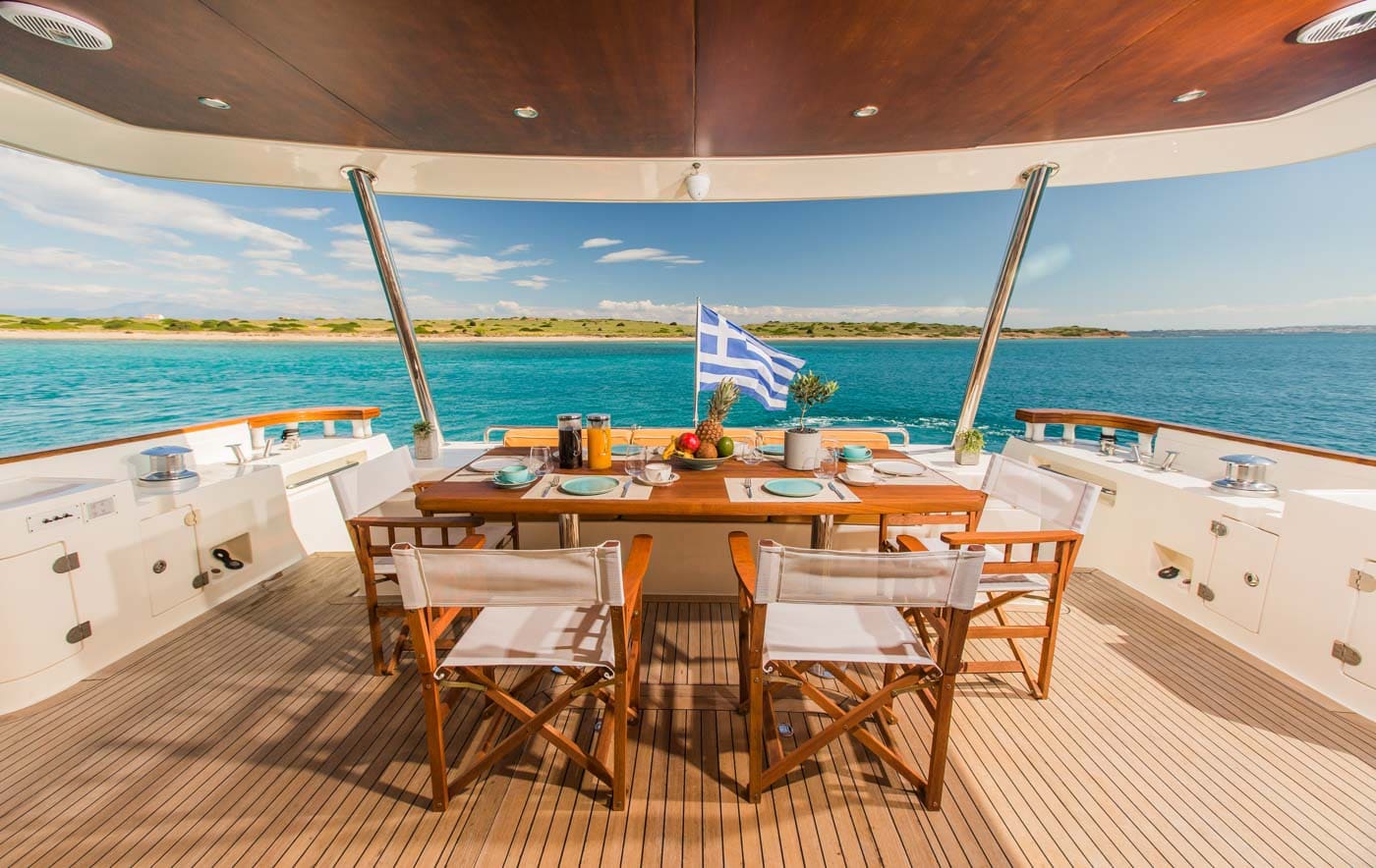 Nach ihrem Stapellauf 2009 wurde sie 2019 komplett überholt und ist bereit, ihre Chartergäste in tadellosem Zustand zu empfangen. Beginnen Sie Ihre Tour auf der stilvollen Panorama-Flybridge, wo Sie mit einem Glas kühlen Champagner anstoßen und sich ein Gourmet-Mittagessen gönnen können, das vom talentierten Bordkoch zubereitet wird. Sobald Sie einen Badestopp eingelegt haben, begeben Sie sich auf die breite Badeplattform, um eines der Wasserspielzeuge zu testen, mit denen Ulisse ausgestattet ist, und anschließend auf das Vordeck, um sich abzutrocknen. Hier finden Sie mehrere Solarien, um sich zu sonnen und mit Ihrer Gesellschaft herrliche Sonnenuntergänge zu genießen. Das Achterdeck bietet eine weitere Möglichkeit, im Freien zu speisen, wunderbar beschattet durch den Überhang der Flybridge. Öffnen Sie die große Glastür, um in den mondänen Salon zu gelangen, der mit Designermöbeln aus hochwertigen Textilien und Leder ausgestattet ist und durch die großen seitlichen Fenster lichtdurchflutet wird. Machen Sie es sich auf einem der beiden Sofas gemütlich und genießen Sie einen Film oder zwei - der 42-Zoll-Flachbildfernseher sorgt für ein echtes Kinoerlebnis. Weiter vorne finden Sie einen formellen Sitztisch für feierliche Mahlzeiten und Zeit zum Zusammensein mit der Familie.