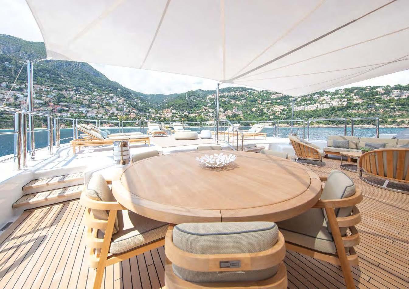 Con un impresionante volumen, AHS es el yate más grande de su categoría. Está equipado con estabilizadores Quantum XT tanto en fondeo como en navegación, garantizando una experiencia de crucero suave y confortable en cualquier condición. Además, con su Wajer 12m chase boat, ofrece traslados exclusivos y la posibilidad de explorar la costa con total comodidad.