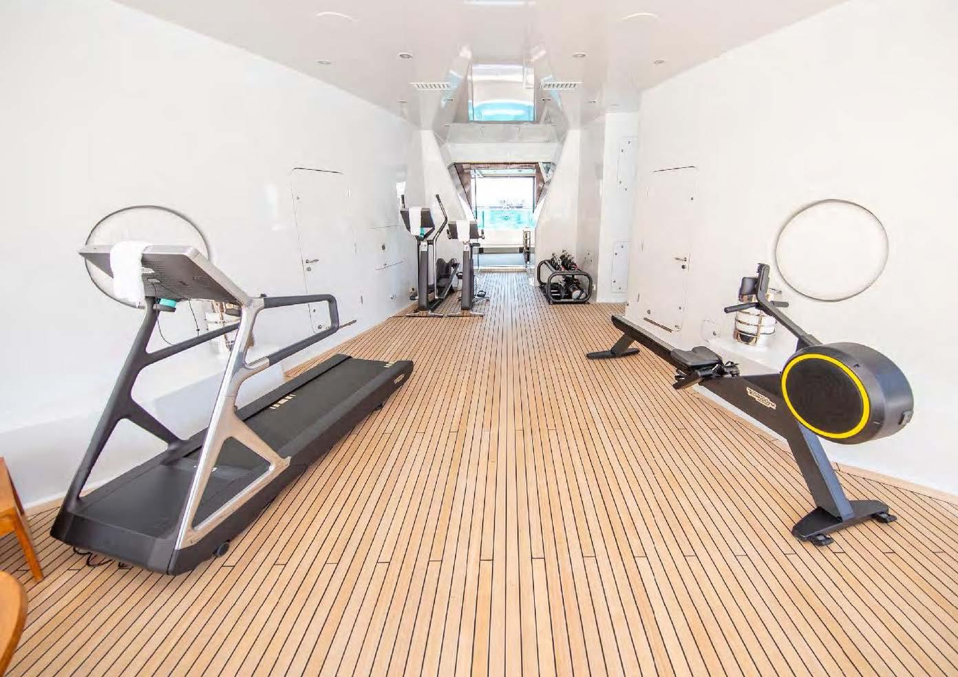 Para los invitados que desean mantenerse activos, AHS cuenta con un gimnasio completamente equipado con tecnología de vanguardia de TechnoGym, incluyendo máquinas de remo, cintas de correr, bicicletas elípticas y una amplia selección de pesas y accesorios de entrenamiento. Desde sesiones de yoga hasta entrenamientos de alta intensidad, esta zona está pensada para satisfacer todas las necesidades de bienestar a bordo.
