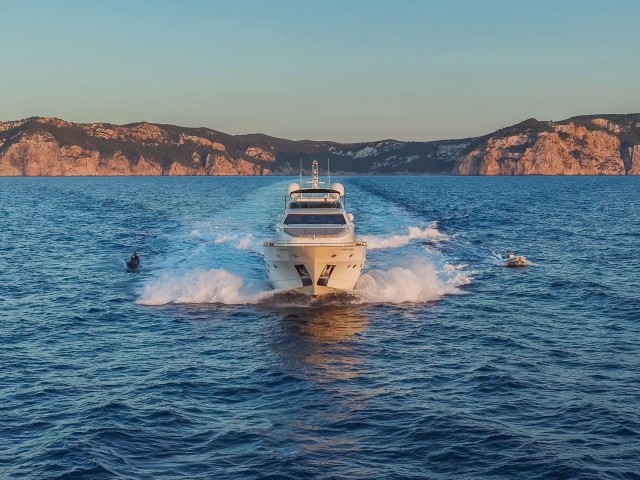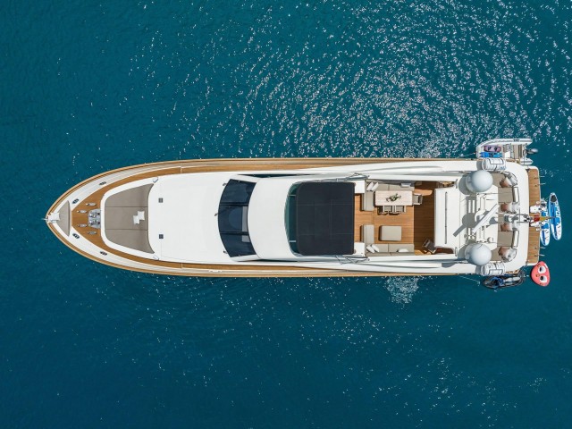 B4 es un fantastico yate a motor de 31,50 metros, construido por el prestigioso astillero español Astondoa y completamente renovado en 2024. Combina amplios espacios interiores, diseño actualizado y un excelente comportamiento en navegación, ofreciendo una experiencia de charter cómoda y versátil.