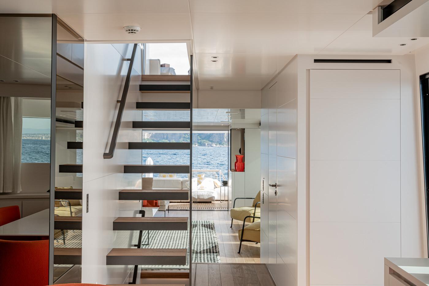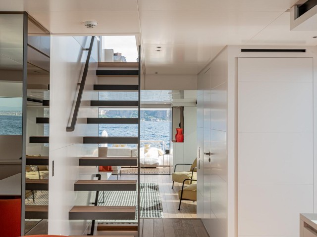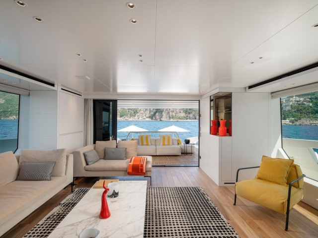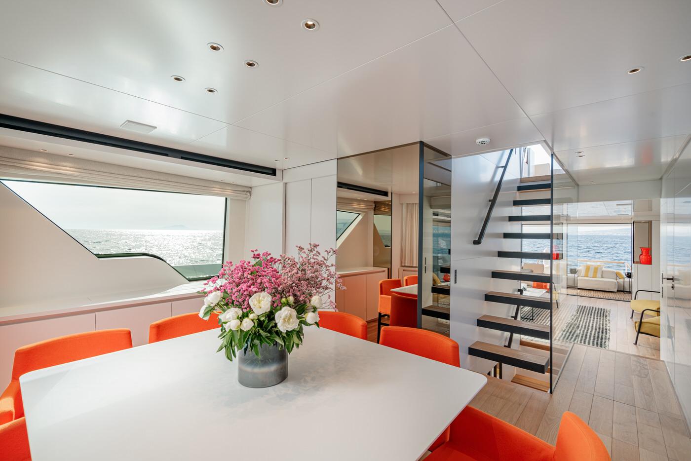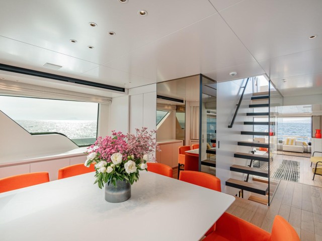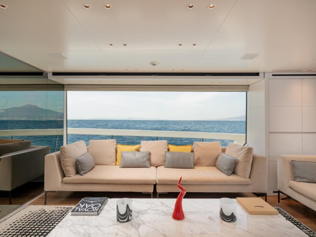 Su concepto SX combina interior y exterior de forma fluida, con grandes superficies acristaladas que aportan luz y amplitud. Una tripulación profesional de cuatro personas se encarga de que la experiencia a bordo sea siempre cómoda, cuidada y sin esfuerzo.