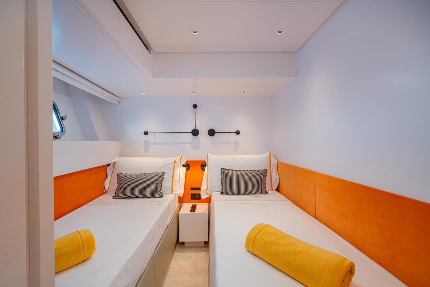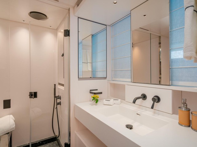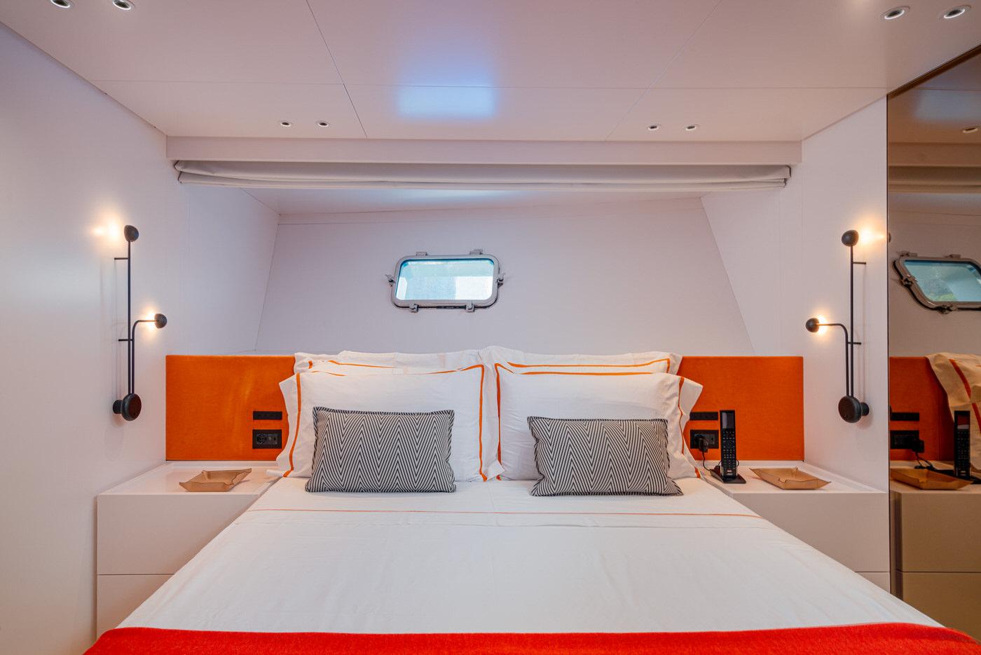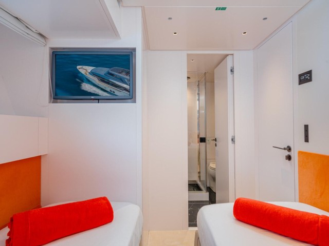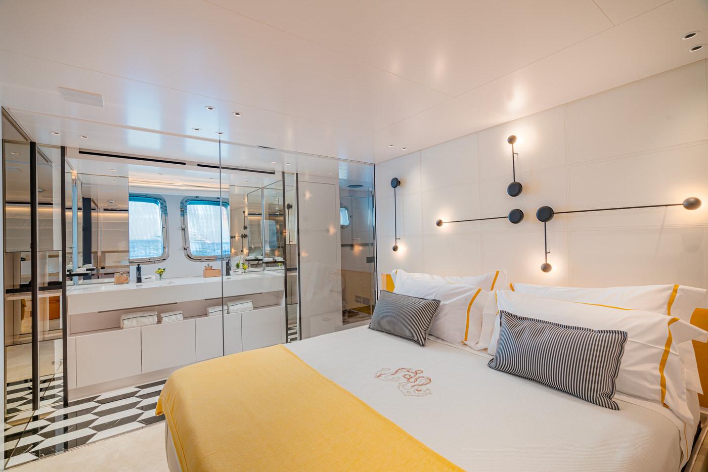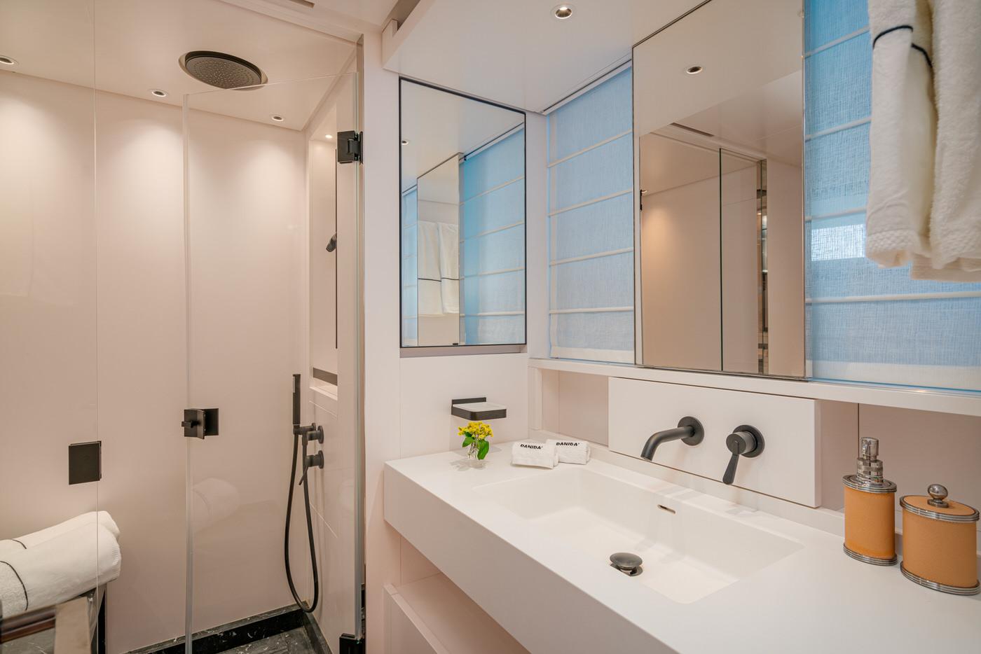 Danida puede alojar hasta ocho invitados en cuatro cabinas, todas con baño en suite. La cabina principal, junto con una cabina VIP y dos cabinas twin, ofrece un diseño equilibrado y acogedor, pensado para garantizar descanso y privacidad durante toda la estancia.