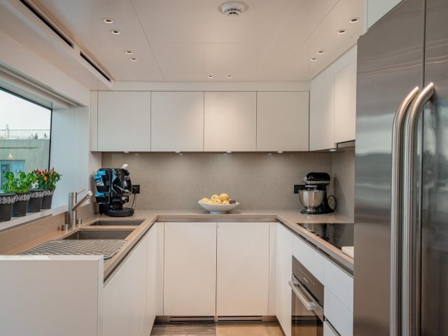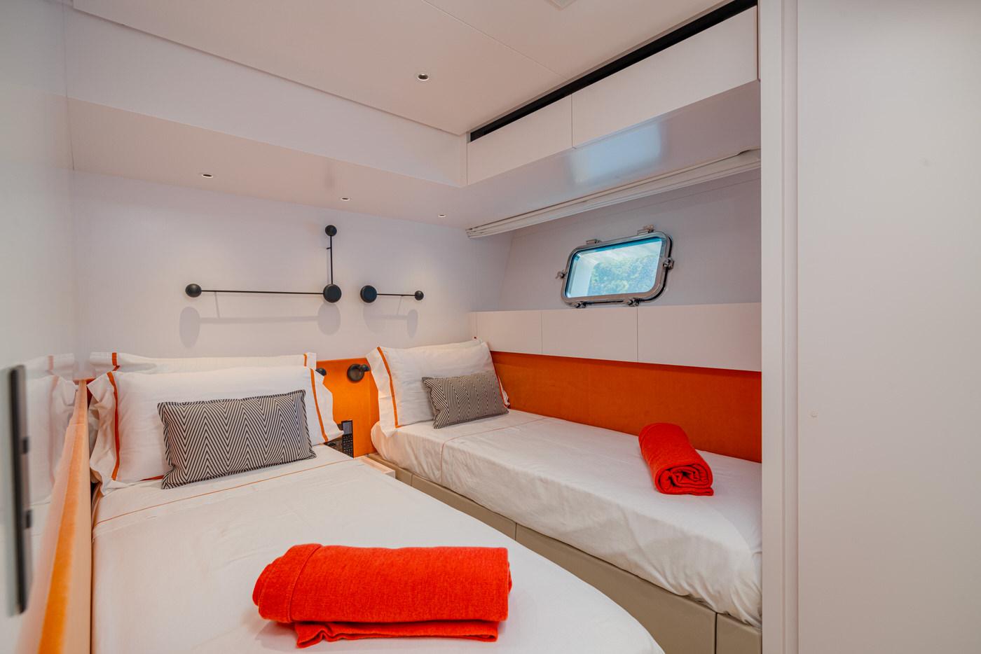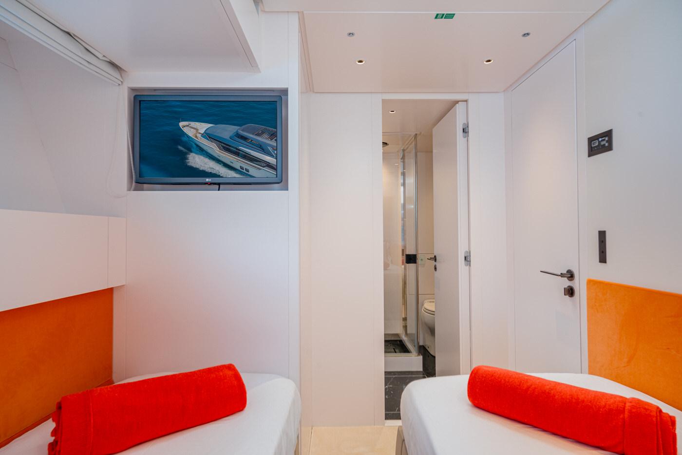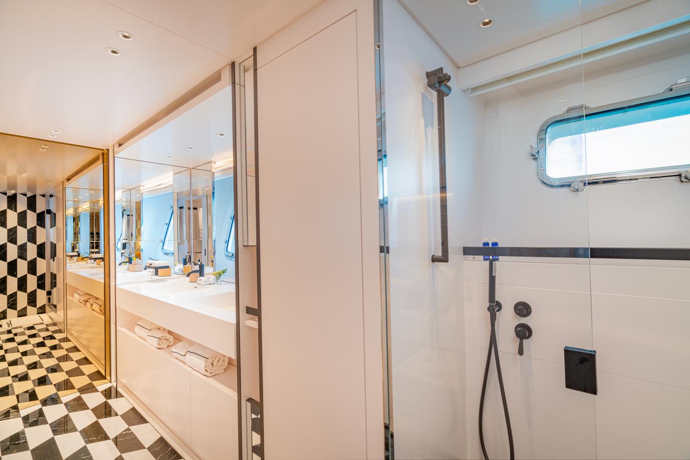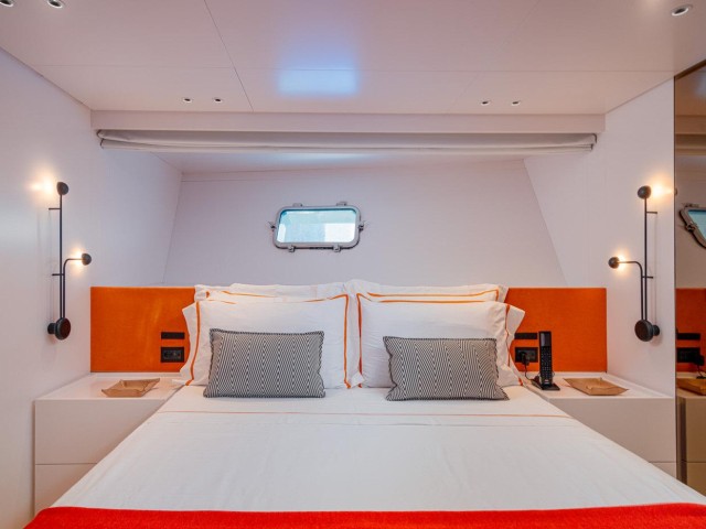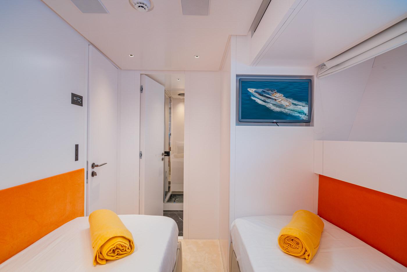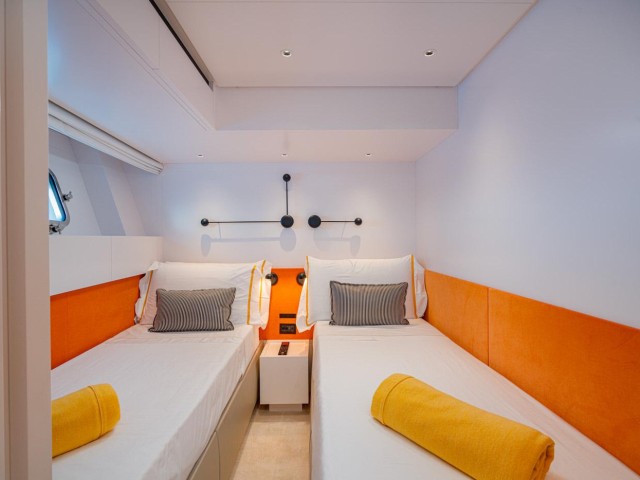 Danida puede alojar hasta ocho invitados en cuatro cabinas, todas con baño en suite. La cabina principal, junto con una cabina VIP y dos cabinas twin, ofrece un diseño equilibrado y acogedor, pensado para garantizar descanso y privacidad durante toda la estancia.