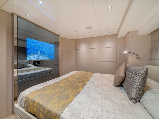 ¿Qué mejor manera de sumergirse en una espléndida escapada al mar que navegar en un yate de lujo de última generación? El diseño limpio del nuevo modelo de Sanlorenzo 78, que fue lanzado en 2020, enriquecerá la atmósfera de su viaje por impresionantes destinos. Perfecto para aquellos que les gusta viajar con estilo, Lucky es una obra maestra de 25 metros de colores blancos y beige. La ingeniería y el diseño italiano se mezclan maravillosamente en este exquisito yate compacto. Cuatro cabinas acomodan hasta 8 exploradores de mar, con un dormitorio principal de tonos discretos y una encantadora vista al mar, un dormitorio VIP y otro doble, e incluso un camarote con litera que dejará asombrados a los marineros más jóvenes. Todos los camarotes están completos con elegantes baños en suite.