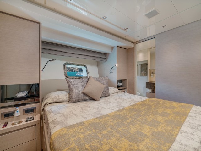 El aspecto refinado del barco se completa con el mobiliario más sofisticado de tonos cremosos y toques finales pulidos, así como complementos de tecnología contemporánea como los sistemas de sonido de audio Bluetooth que facilitan la reproducción de música para añadir aún más atmósfera a su aventura marina. El interior está equipado con televisores, así como con aire acondicionado - este sublime yate de motor es la mezcla perfecta de confort y estilo, lo que lo convierte en una elección excepcional para un cómodo viaje a través de las costas azules con amigos y familiares a bordo de Lucky.