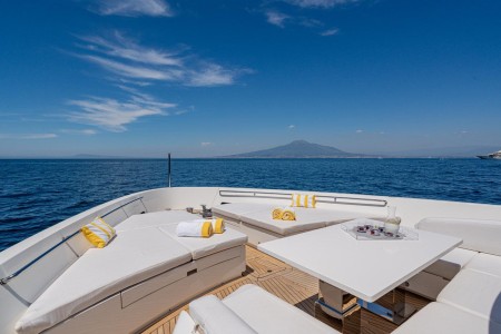 Nightflower se distingue por sus amplias cubiertas que ofrecen diversas áreas para el entretenimiento y el descanso. El flybridge cuenta con una zona de comedor sombreada con una gran mesa, ideal para disfrutar de comidas al aire libre, además de un amplio espacio para tomar el sol o realizar sesiones de yoga y ejercicio. La cubierta de popa ofrece una cómoda zona de estar, perfecta para relajarse, mientras que la cubierta de proa brinda un área adicional para tomar el sol y disfrutar de vistas espectaculares.