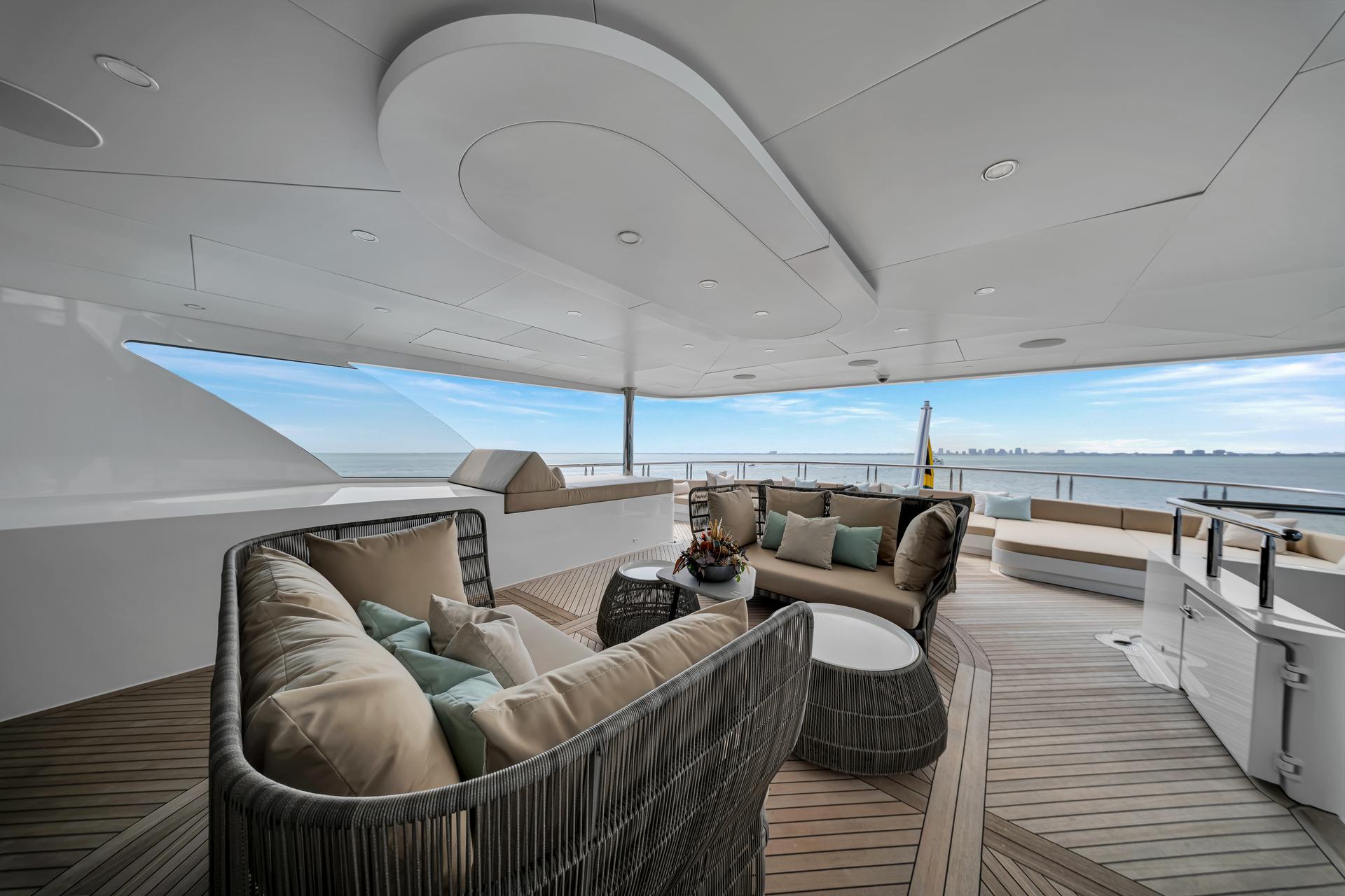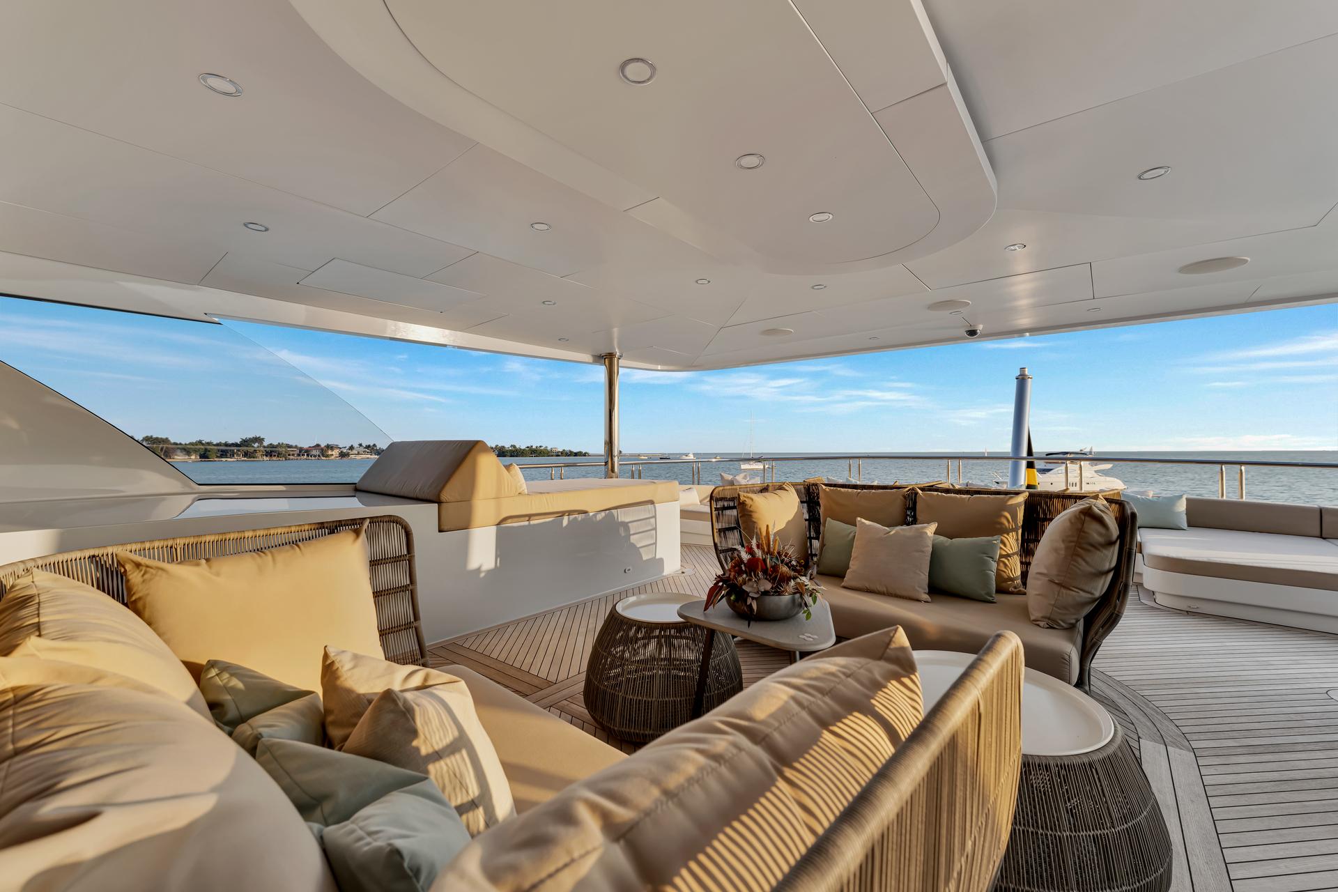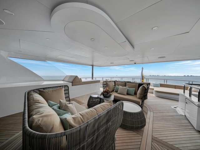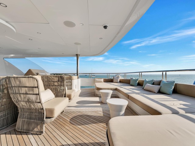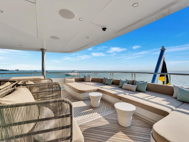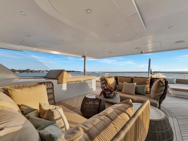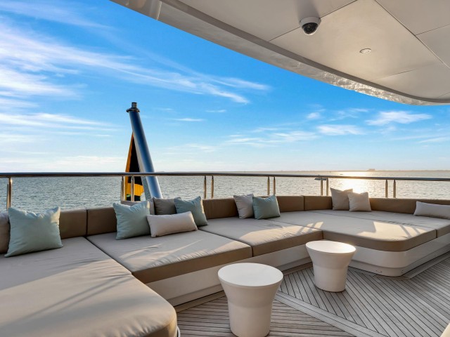 En el exterior, su cubierta solárium es el refugio definitivo, con jacuzzi, tumbonas y múltiples zonas de descanso para tomar el sol o relajarse a la sombra. Gracias a la conectividad Starlink a bordo, los huéspedes pueden mantenerse conectados mientras disfrutan de la vida en el agua.