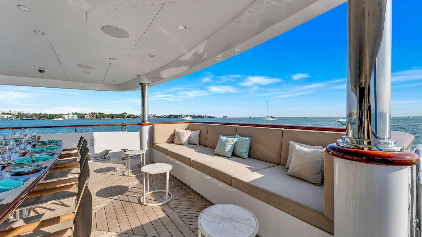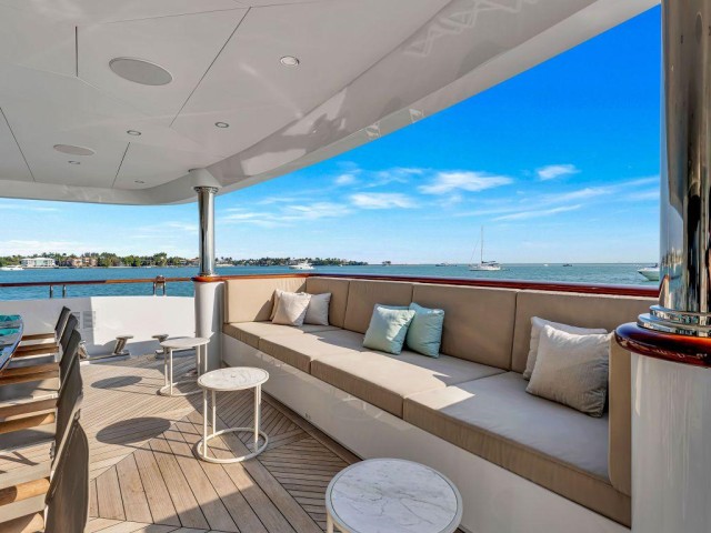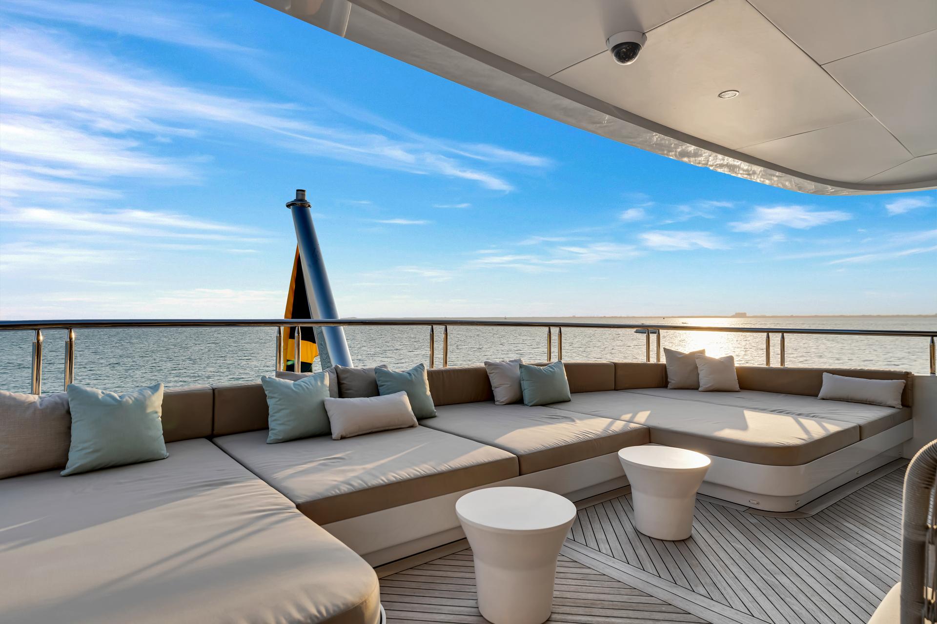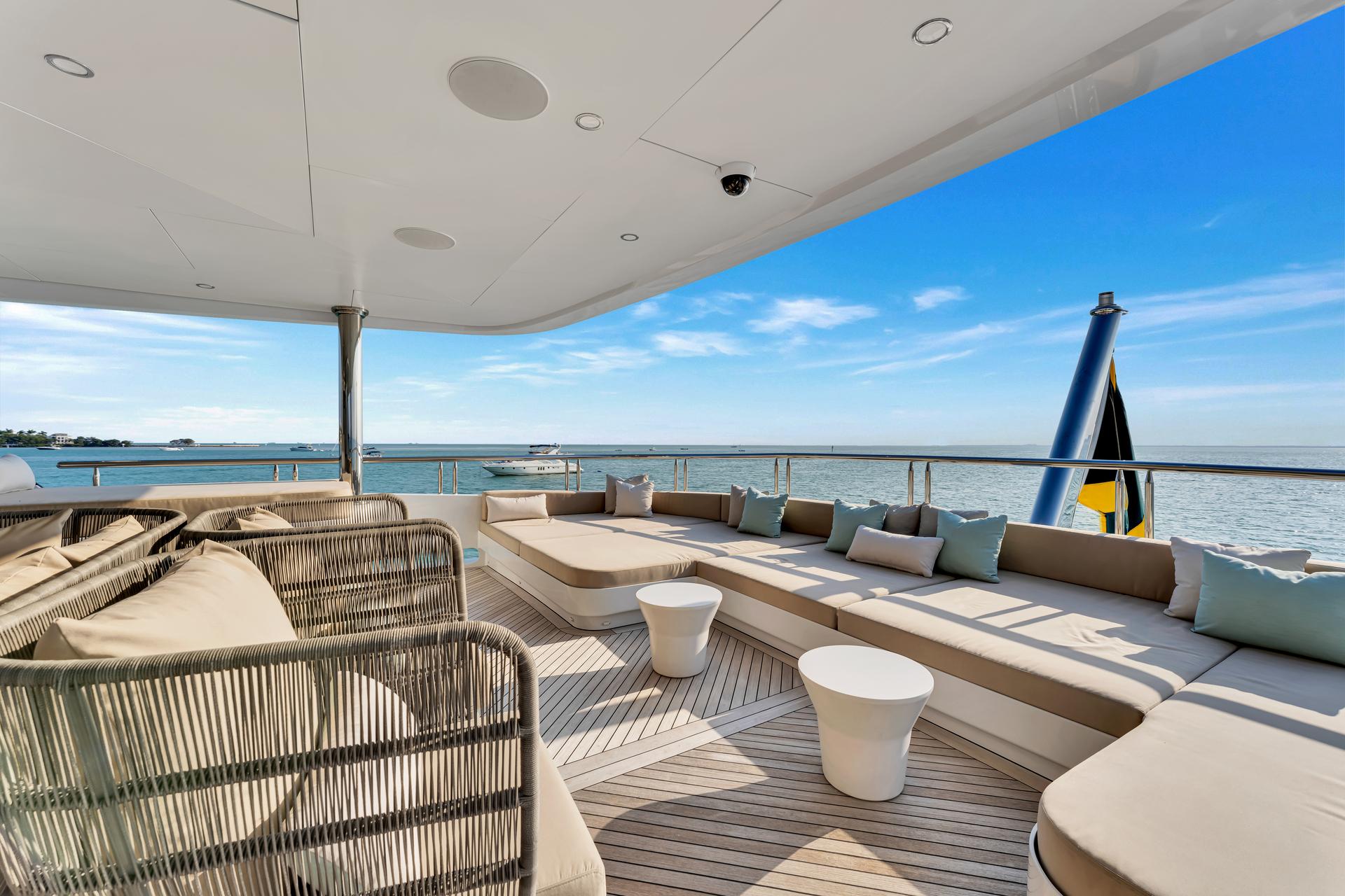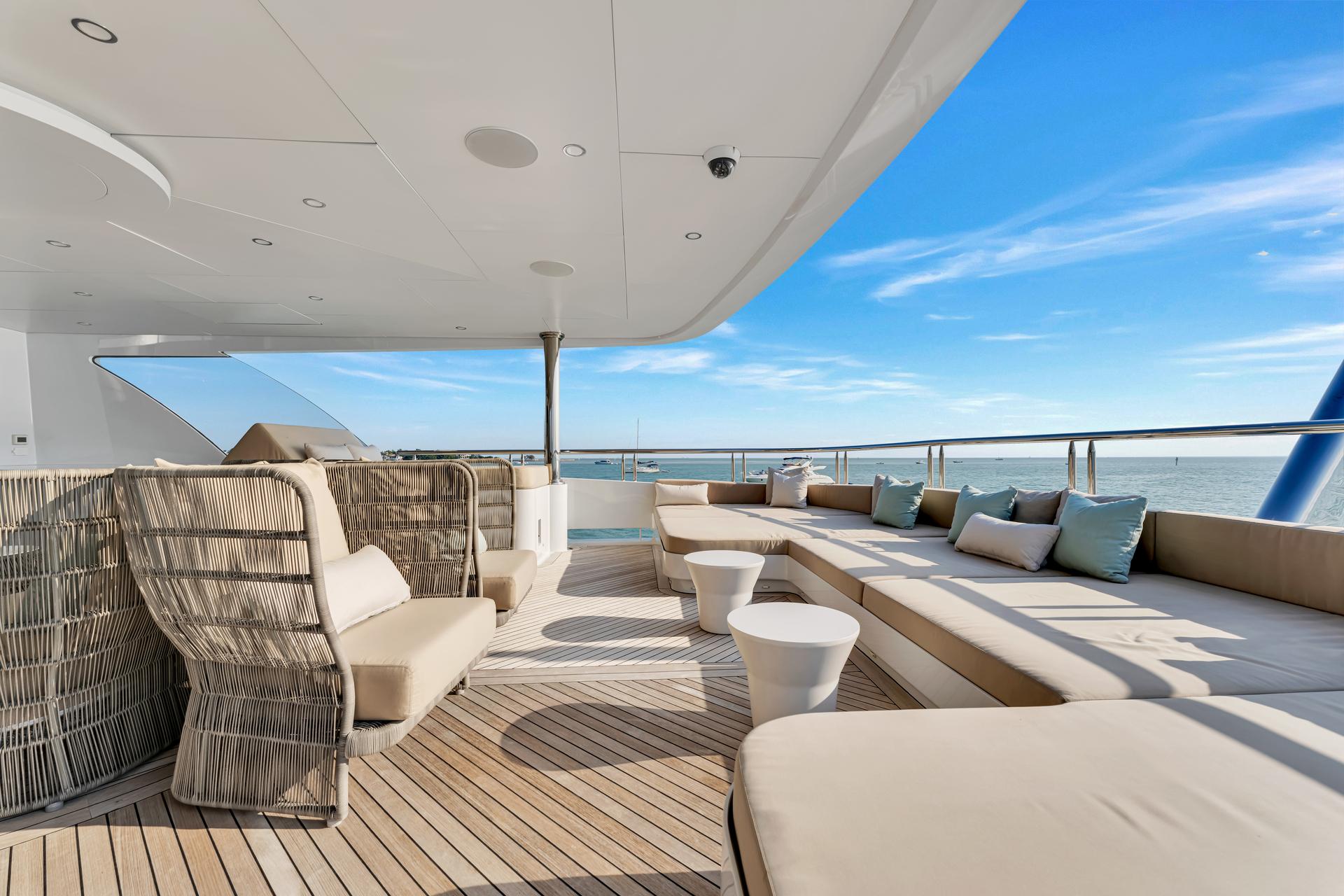 En el exterior, su cubierta solárium es el refugio definitivo, con jacuzzi, tumbonas y múltiples zonas de descanso para tomar el sol o relajarse a la sombra. Gracias a la conectividad Starlink a bordo, los huéspedes pueden mantenerse conectados mientras disfrutan de la vida en el agua.