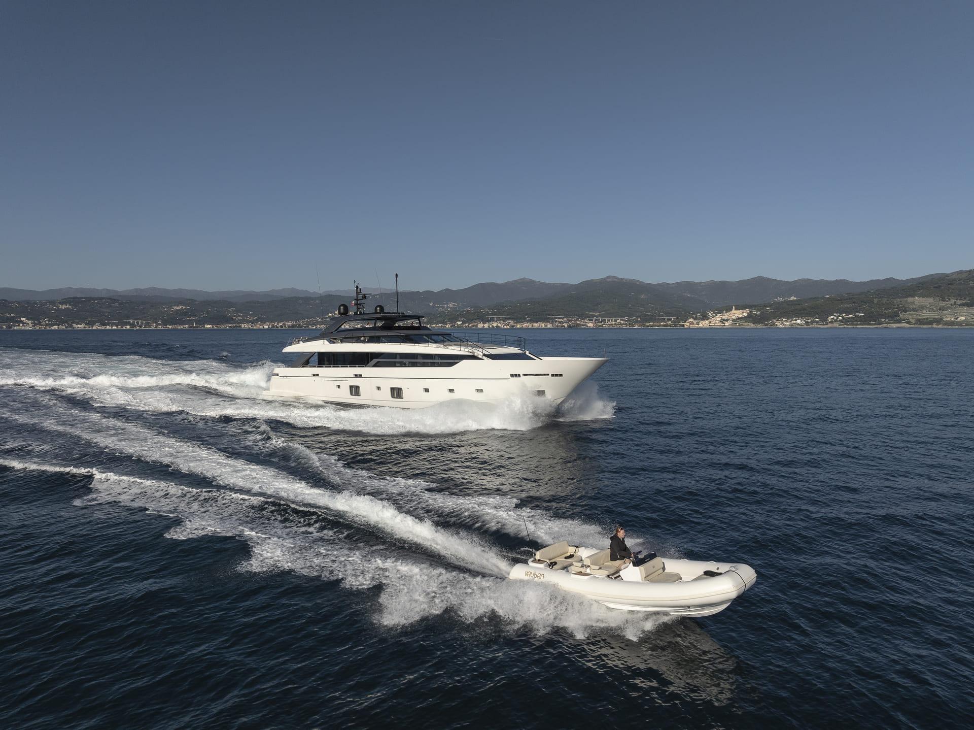 Vauban es un impresionante yate a motor Sanlorenzo de 36,92 metros, entregado en 2024, que refleja a la perfección la filosofía de diseño moderno, luminoso y funcional de este prestigioso astillero. Sus líneas limpias y la fluida conexión entre interior y exterior crean un ambiente elegante y relajado a bordo.