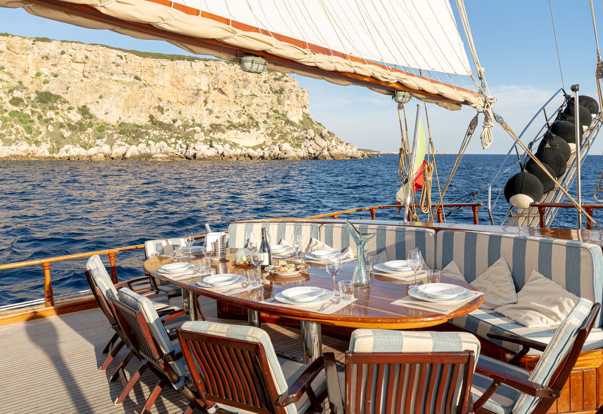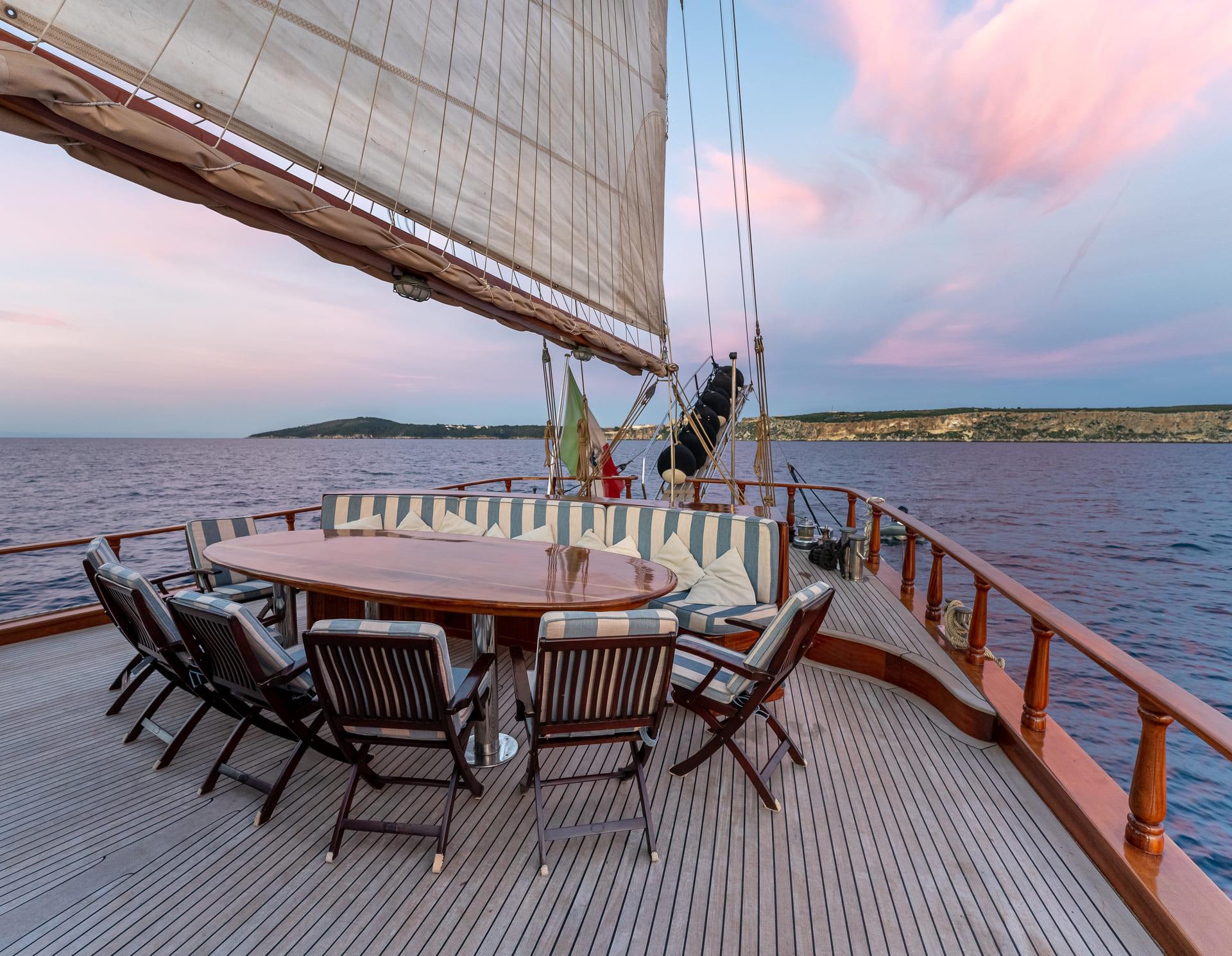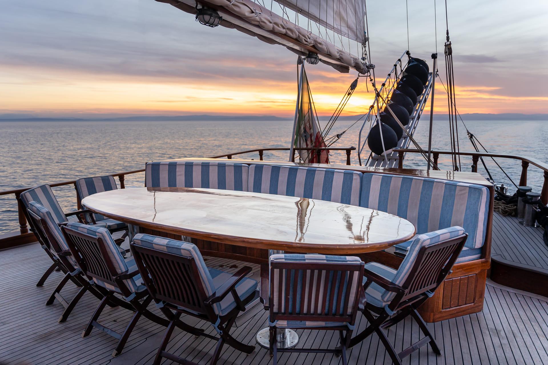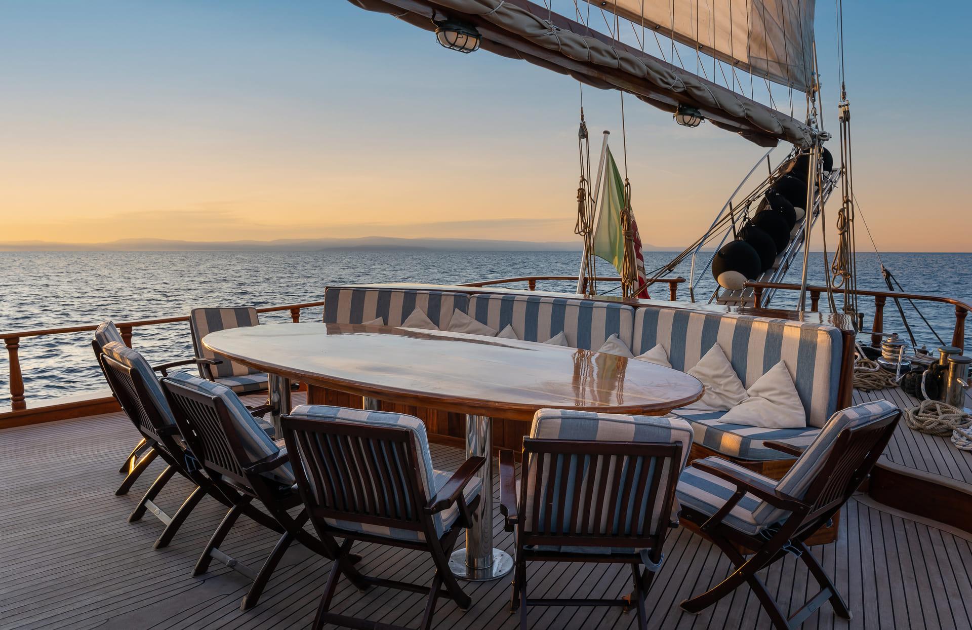Whether at anchor or under sail, each outdoor space offers a different way to enjoy the surroundings.