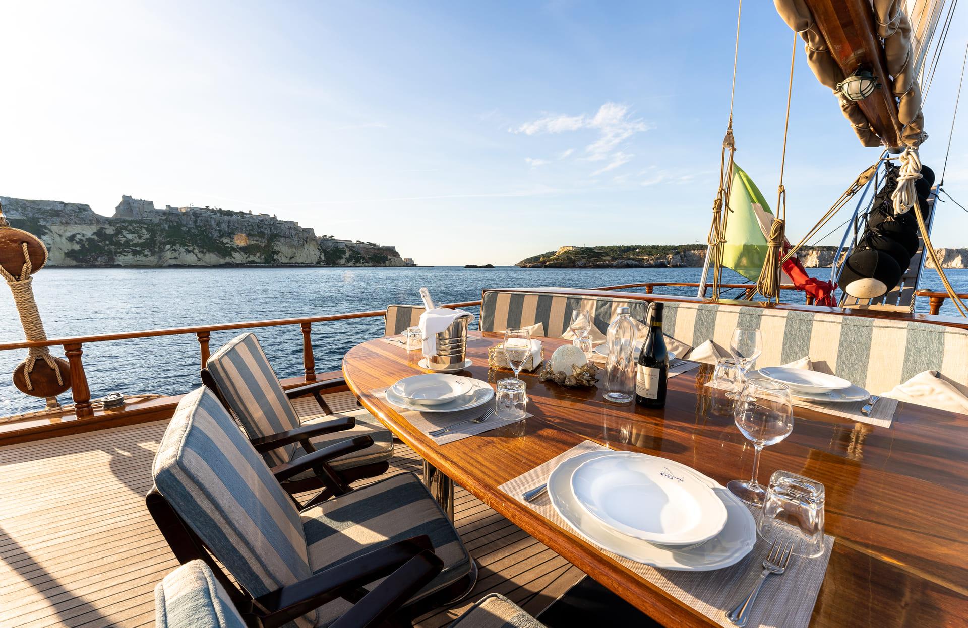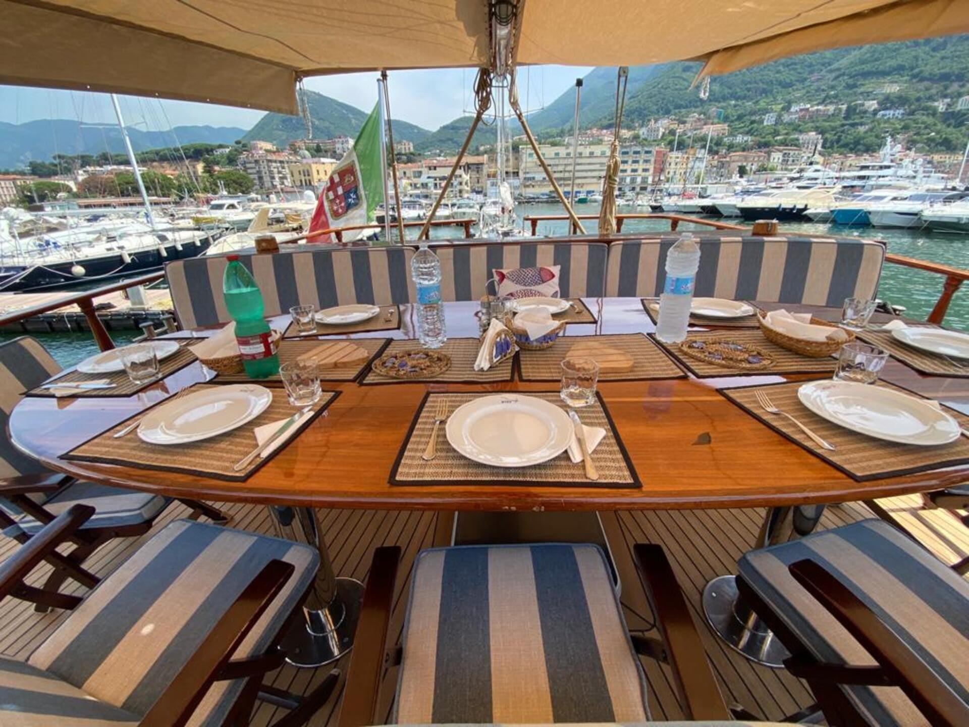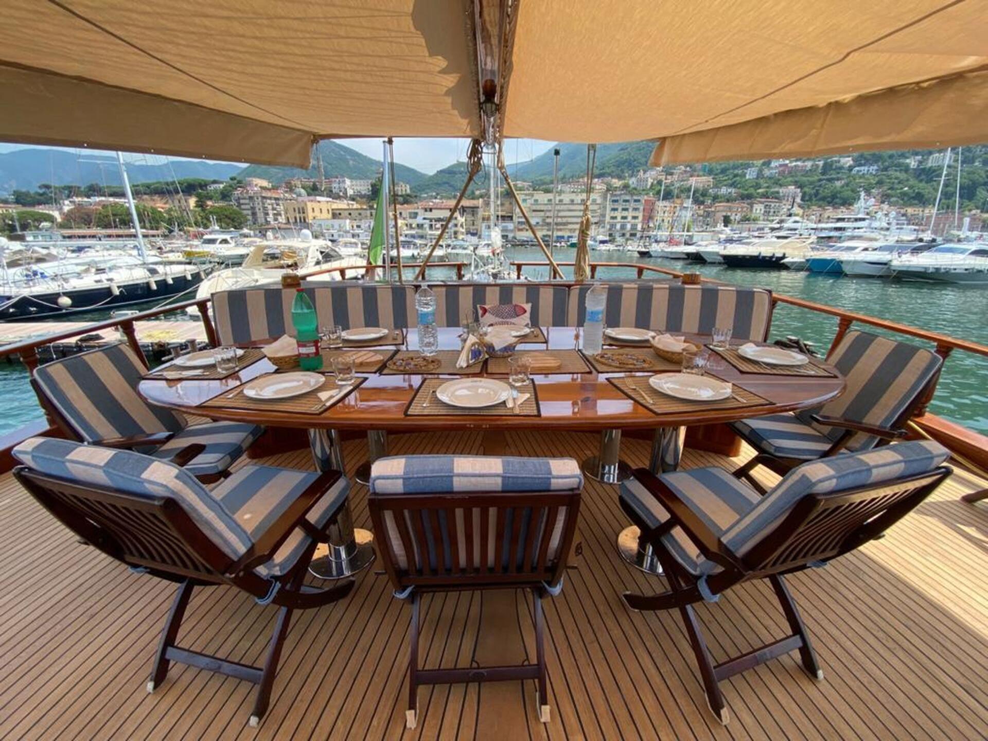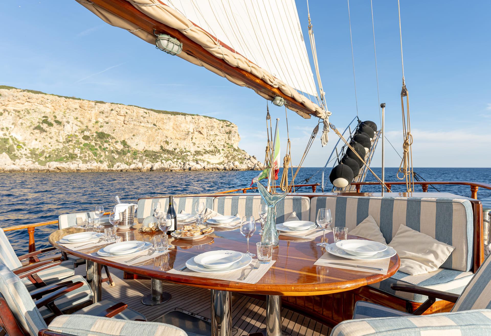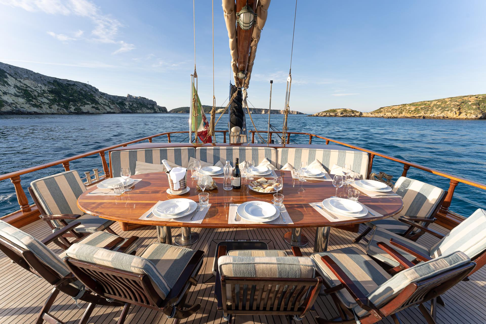 Whether at anchor or under sail, each outdoor space offers a different way to enjoy the surroundings.