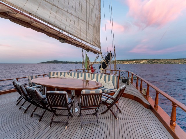 Sailing yacht Myra is a beautifully maintained 29.87-meter gulet, originally built in 2003 and recently refreshed in 2026 to ensure she remains in excellent condition for her guests. Combining traditional craftsmanship with thoughtful modern updates, she offers a warm, authentic yachting experience with a comfortable and welcoming atmosphere on board.