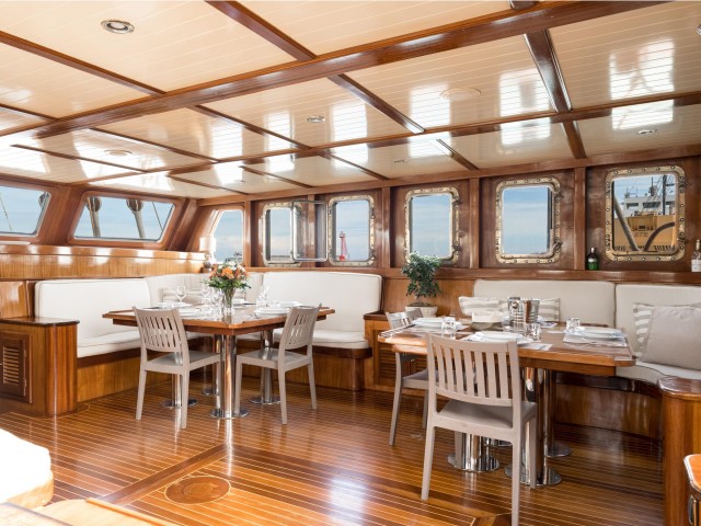 With her classic lines, teak decks and inviting spaces, Myra is ideal for guests looking to enjoy a more traditional style of cruising, paired with attentive service and relaxed living at sea.