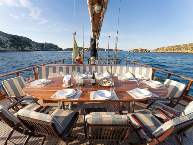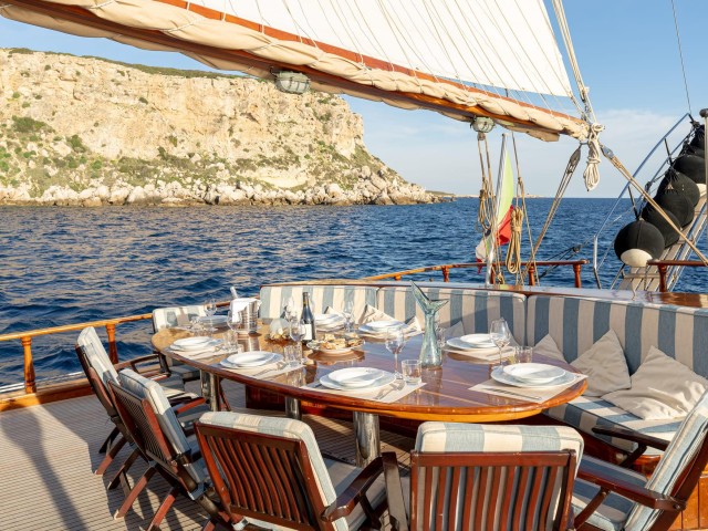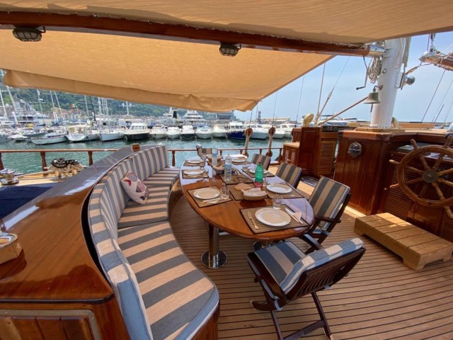 Myra offers a genuine gulet experience, combining traditional sailing with comfort and ease. Her experienced crew ensures that everything runs smoothly on board, from daily service to tailored moments throughout the journey. With her welcoming atmosphere, classic character and well-balanced layout, Myra is an ideal choice for guests seeking a relaxed and authentic charter, where time on the water is enjoyed at a slower, more considered pace.
