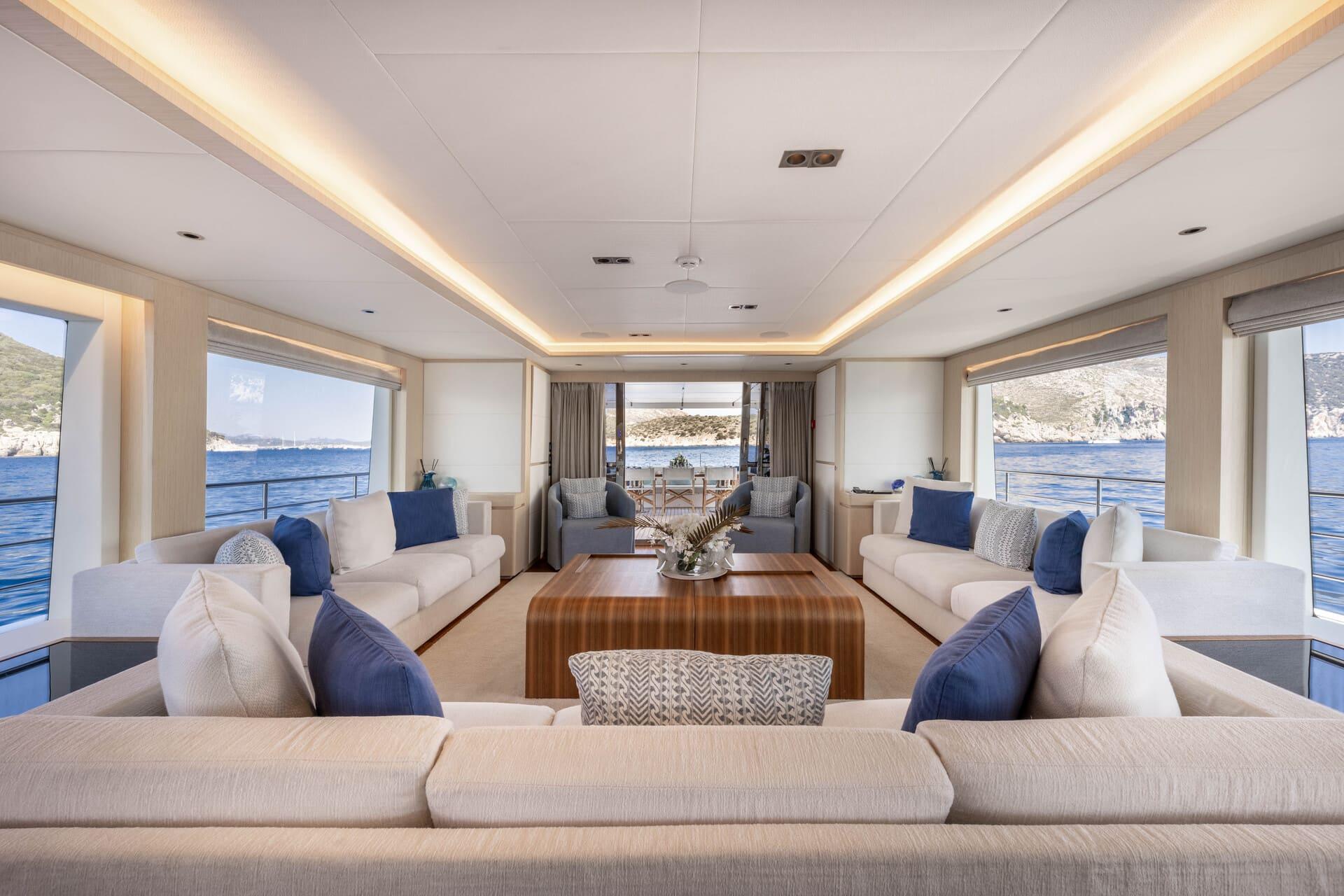 From sun-soaked lounging areas to intimate dining spots, Ocean View is designed for outdoor living at its finest. The aft deck features innovative folding balconies, expanding the space into a sprawling entertainment area for sunset cocktails, al fresco dining, or starlit gatherings.