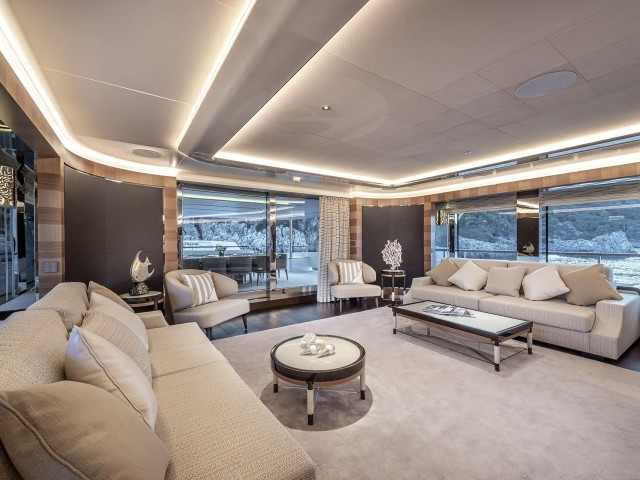 Steps ahead, you’ll find the wide hydraulic bathing platform that will serve as your private beach in the aquamarine coves, with plenty of water toys to choose from. Fitness-conscious charterers will be pleased to hear that full gym equipment is provided onboard, if using the seabobs, jetski or waterskis wasn’t taxing enough.
