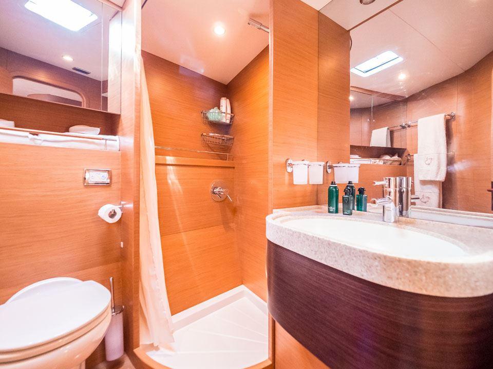 A unique feature on board is the private sauna, located aft of the saloon, offering an additional space for relaxation and well-being after a day on the water.